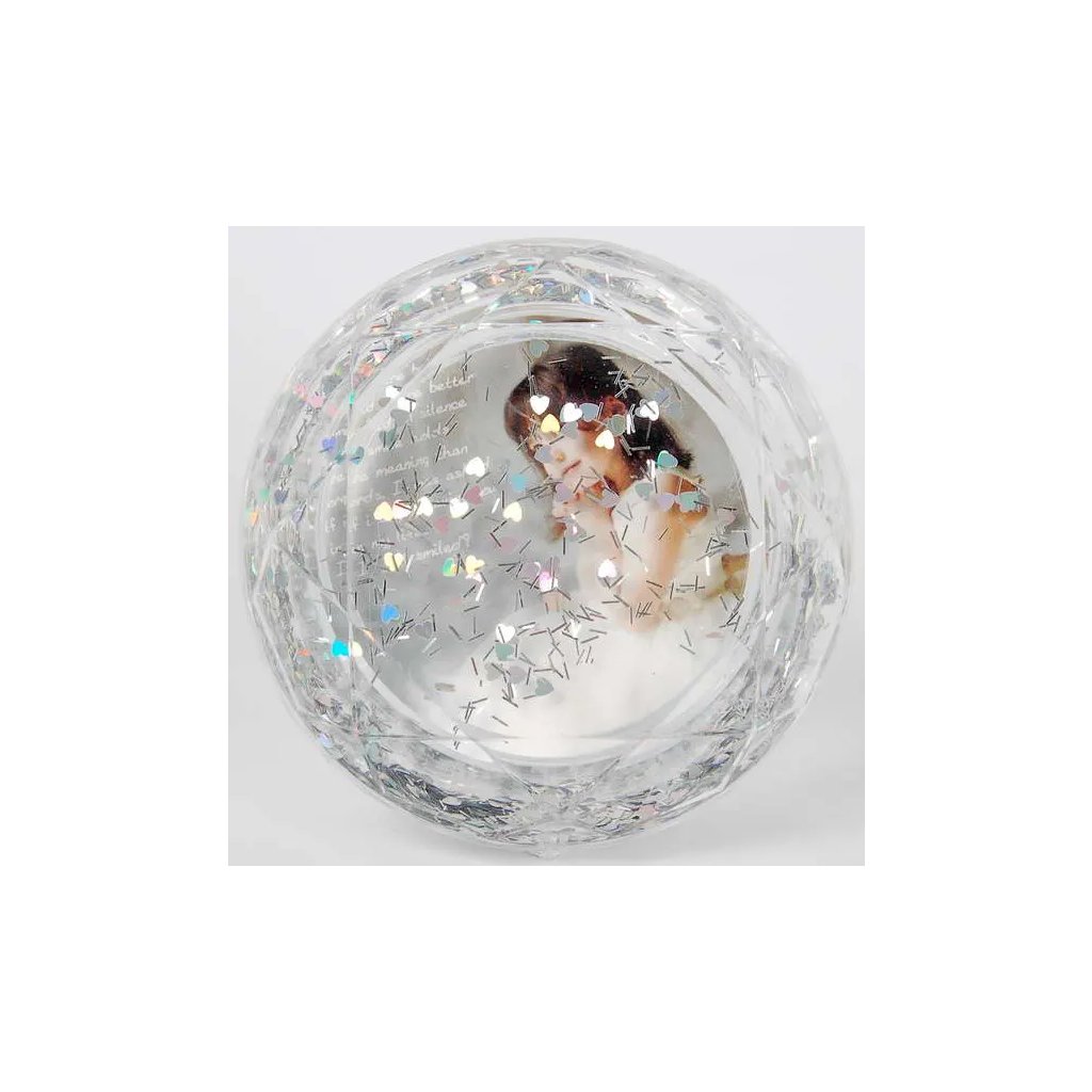 Vzpomínejte na své nejkrásnější okamžiky s tímto fotorámečkem formou sněžítka Diamond. Plastový rámeček s třpytkami, které plavou v tekutině, je ideální na jednu fotografii o rozměrech 6,5 x 6,5 cm. Celé sněžítko má rozměr 10 x 10 cm. Fotografie je chráněna plexisklem a jednoduše se vkládá do sněžítka ze zadní strany.Doplňkové parametry