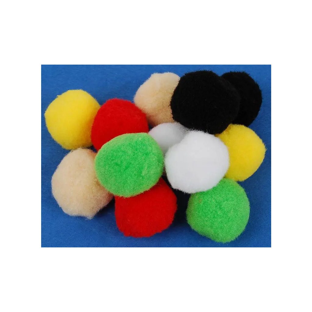 Jedná se o sadu 12 kusů velkých polyesterových chlupatých bambulek. Bambulky jsou dodávány v mixu barev (např. bílá, černá, žlutá, červená, zelená a béžová/krémová). Jsou ideální pro kreativní tvoření, vyrábění figurek, zvířátek a dalších dekorací. Každá bambulka má jednotnou velikost 40 mm v průměru.Doplňkové parametry