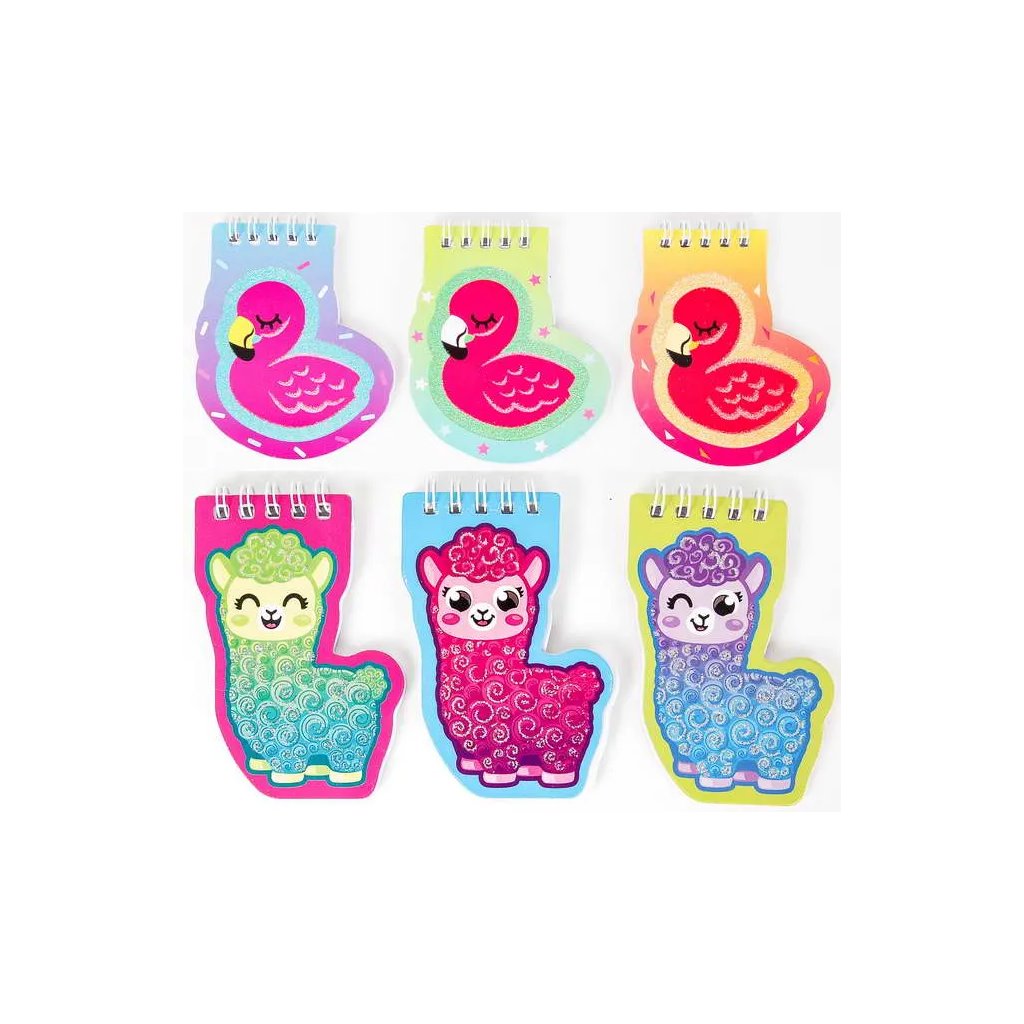 Tento spirálový blok je ideální pro rychlé poznámky a nápady. Blok má atraktivní motivy (např. lamy a plameňáci) s parciálním glitterovým lakem, který zpestří jeho obálku. Blok má spirálovou vazbu, obsahuje 38 listů a je ve velikosti 8,5 x 10,5 cm. Pokud Vám záleží na konkrétním motivu (např. barva květin/rámečku), specifikujte jej, prosím, co nejpřesněji v poznámce k objednávce.Doplňkové parametry