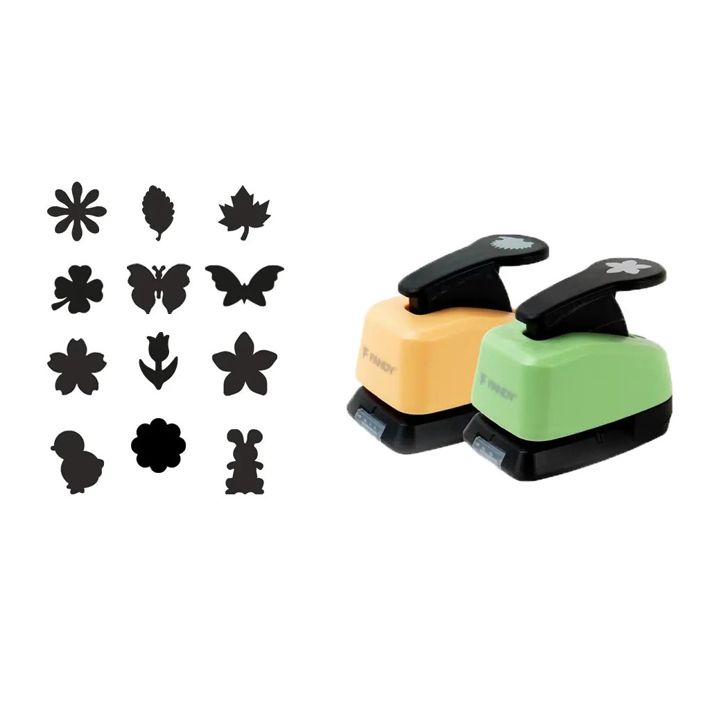 Tato sada 24 dekoračních děrovaček je skvělý pomocník pro tvoření s dětmi. V balení naleznete 12 různých motivů, například různé listy, čtyřlístky, motýlky, kytičky, tulipán, kuřátko a králík. Díky pružinovému mechanismu je děrování snadné, a zvládnou ho tak i malé dětské ruce. Děrovačky jsou vhodné k vytváření drobných ozdob a dekorací, skvěle se hodí na tvoření přání, blahopřání, pozvánek a dalších projektů. Poradí si s papírem do 300 g/m2 a dokonce i s 2mm mechovou pryží. Velikost výseku je 16 mm.Doplňkové parametry