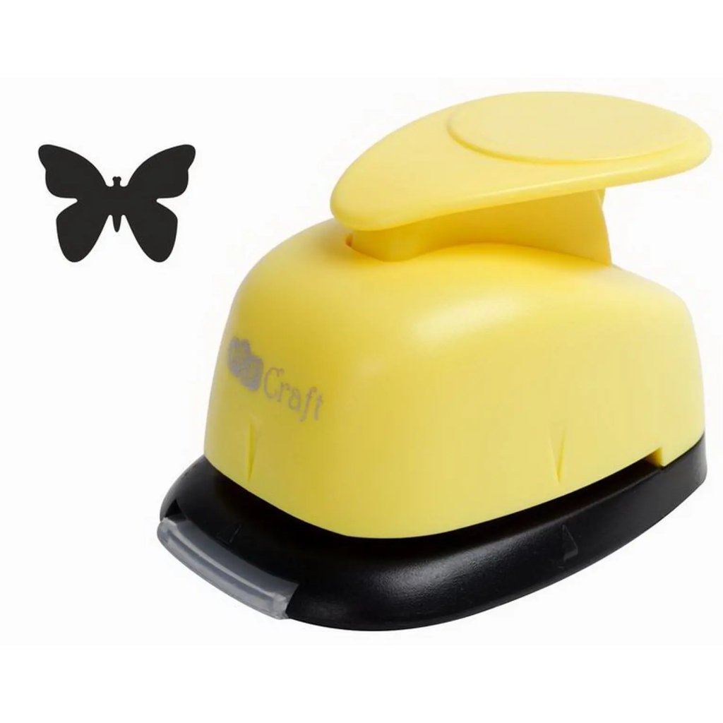 Tato extra velká dekorační děrovačka s motivem rozepjatého motýla je perfektním nástrojem pro vytváření výrazných papírových dekorací, ozdob na oslavy nebo pro scrapbooking. Nástroj v zářivě žlutém provedení je vybaven spolehlivým pružinovým mechanismem, který zajišťuje lehké a plynulé děrování i přes větší rozměr výseku. Děrovačka vytvoří precizní a detailní motiv o velikosti 50 mm, přičemž nejlepších výsledků dosáhnete při použití papíru o gramáži 80 až 220 g/m². Díky své robustní konstrukci a snadnému ovládání je vhodná i pro děti, které s ní mohou tvořit úžasné prostorové efekty na svých uměleckých dílech.Doplňkové parametry