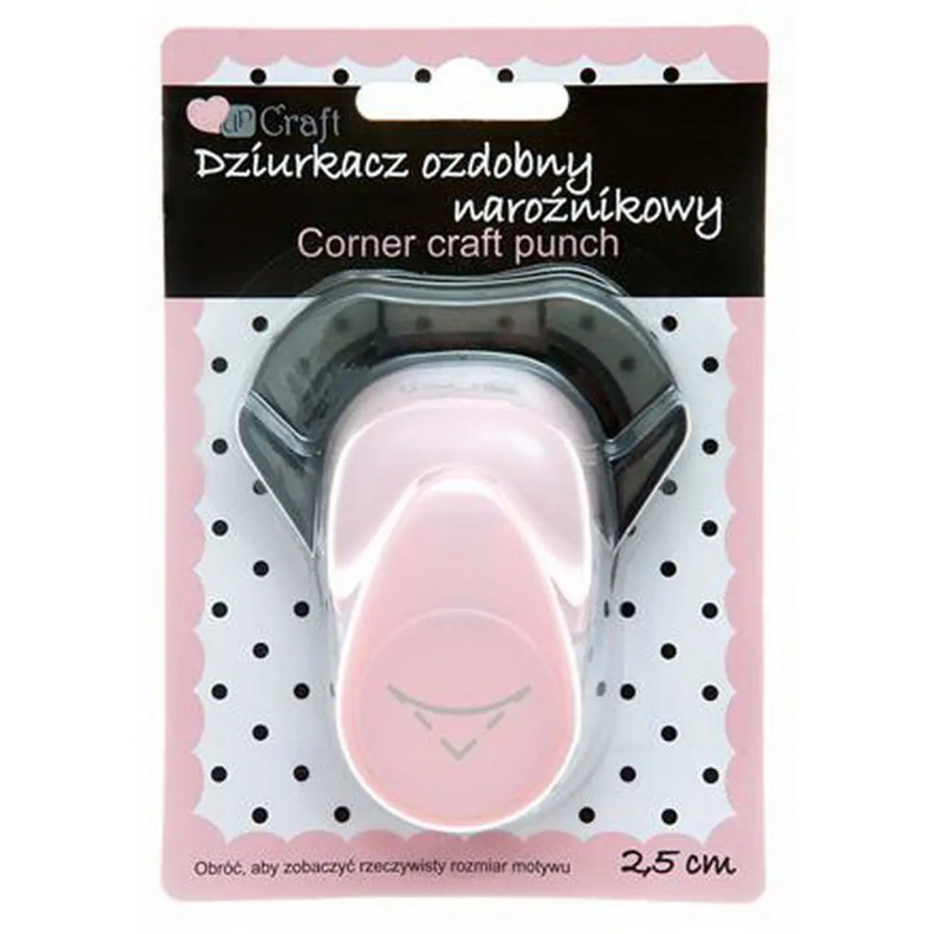 Jedná se o dekorativní rohovou děrovačku (zaoblovač) s ergonomickým designem. Děrovačka je vybavena pružinovým mechanismem pro jednoduché a snadné děrování, díky čemuž je vhodná i pro děti. Slouží k dekorativnímu zaoblování rohů papíru a vytváří výsek o velikosti 25 mm (vzorek motivu najdete u výseku). Je ideální pro kreativní projekty jako scrapbooking, výroba pohlednic, visaček, nebo pro zaoblení hran fotografií. Pro nejlepší výsledek je doporučená tloušťka papíru od 80 do 220 g/m2. Balení je ve formě blistru.Doplňkové parametry