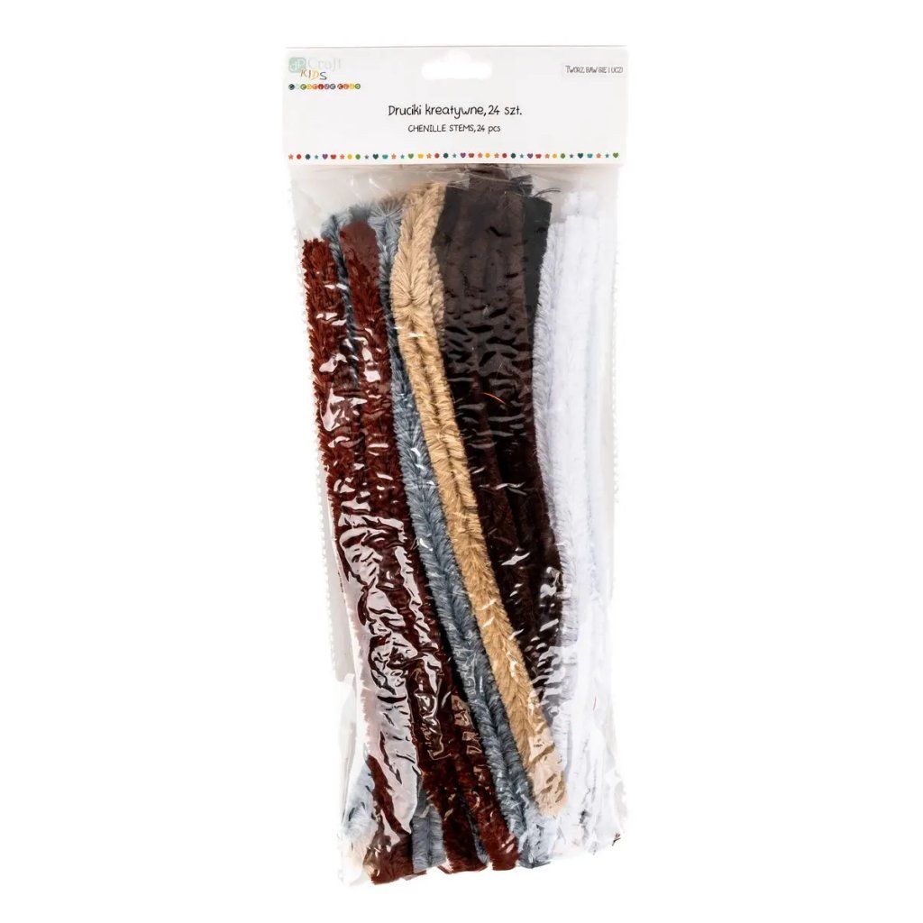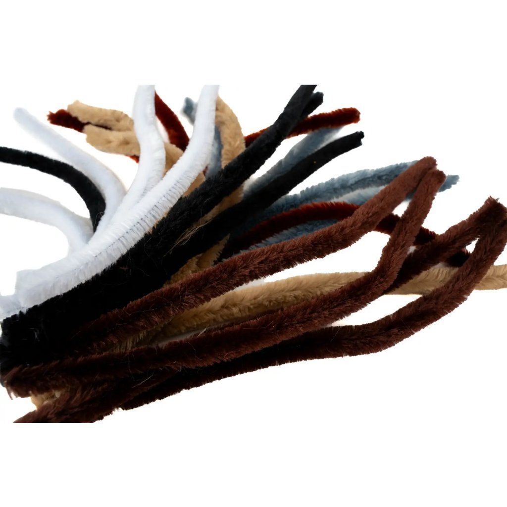 Jedná se o velkou sadu 24 kusů dekoračních chlupatých drátků (ženilkové dráty), které jsou ideální pro kreativní tvoření figurek a zvířátek. Drátky jsou v mixu barev, typicky s odstíny hnědé, černé, šedé a bílé. Jsou lehce tvarovatelné a každý má délku 30 cm.Doplňkové parametry
