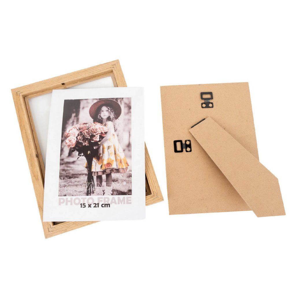 Vzpomínejte na své nejkrásnější okamžiky s tímto elegantním fotorámečkem z MDF v hnědém provedení v dekoru dřeva. Rámeček má jednoduchý, ale nadčasový design, který se hodí do každého interiéru. Je ideální na fotografii o rozměrech 15 x 21 cm. Celý rámeček má rozměr 18 x 24 cm, přičemž šířka lišty je 2 cm. Rámeček lze postavit na komodu, poličku nebo noční stolek, a také ho můžete zavěsit na zeď, a to jak horizontálně, tak i vertikálně. Fotografie je chráněna sklem a jednoduše se vkládá ze zadní strany.Doplňkové parametry