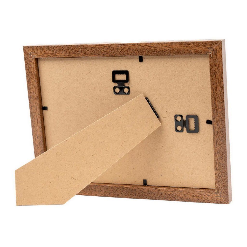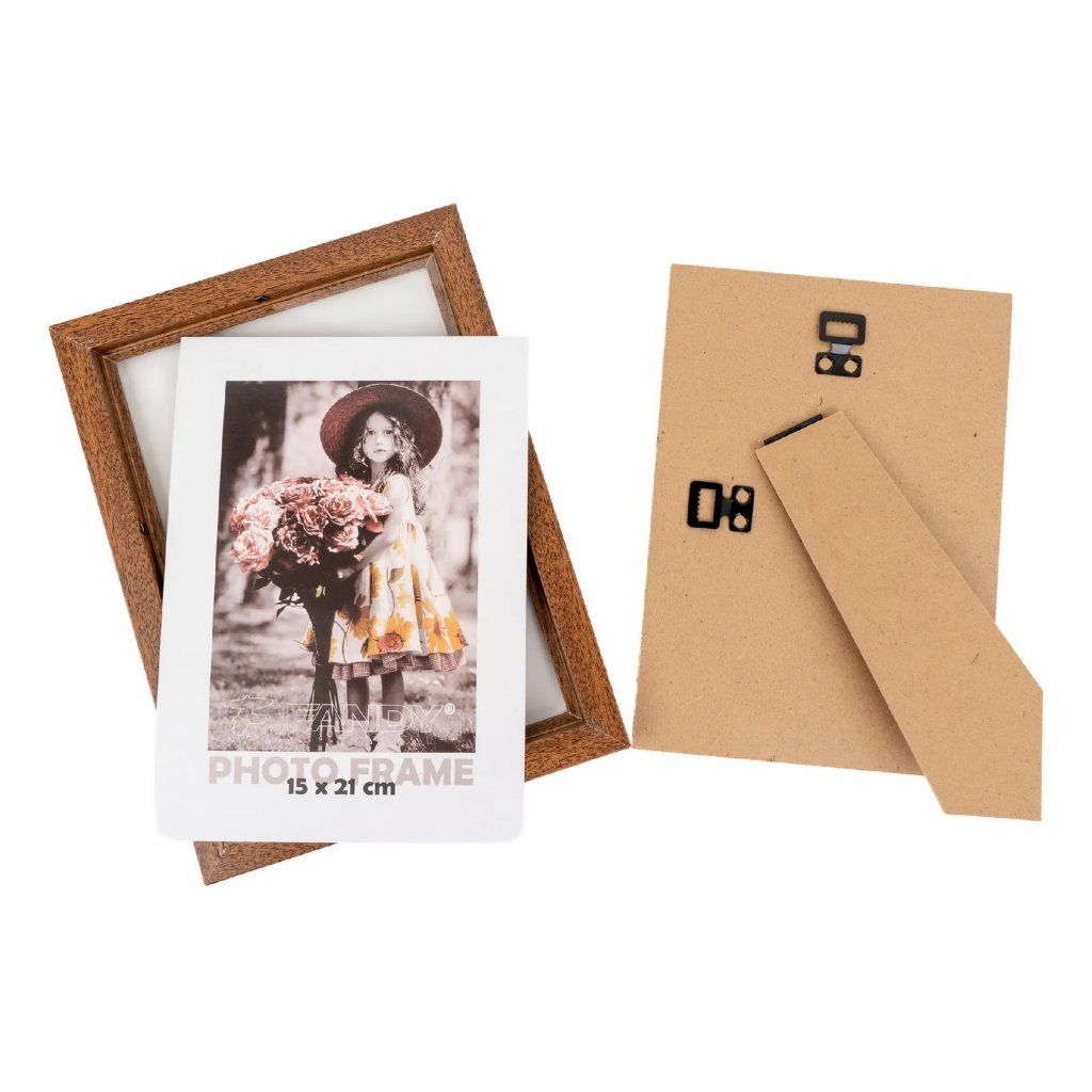 Vzpomínejte na své nejkrásnější okamžiky s tímto elegantním fotorámečkem z MDF v tmavě hnědém provedení v dekoru dřeva. Rámeček má jednoduchý, ale nadčasový design, který se hodí do každého interiéru. Je ideální na fotografii o rozměrech 15 x 21 cm. Celý rámeček má rozměr 18 x 24 cm, přičemž šířka lišty je 2 cm. Rámeček lze postavit na komodu, poličku nebo noční stolek, a také ho můžete zavěsit na zeď, a to jak horizontálně, tak i vertikálně. Fotografie je chráněna sklem a jednoduše se vkládá ze zadní strany.Doplňkové parametry