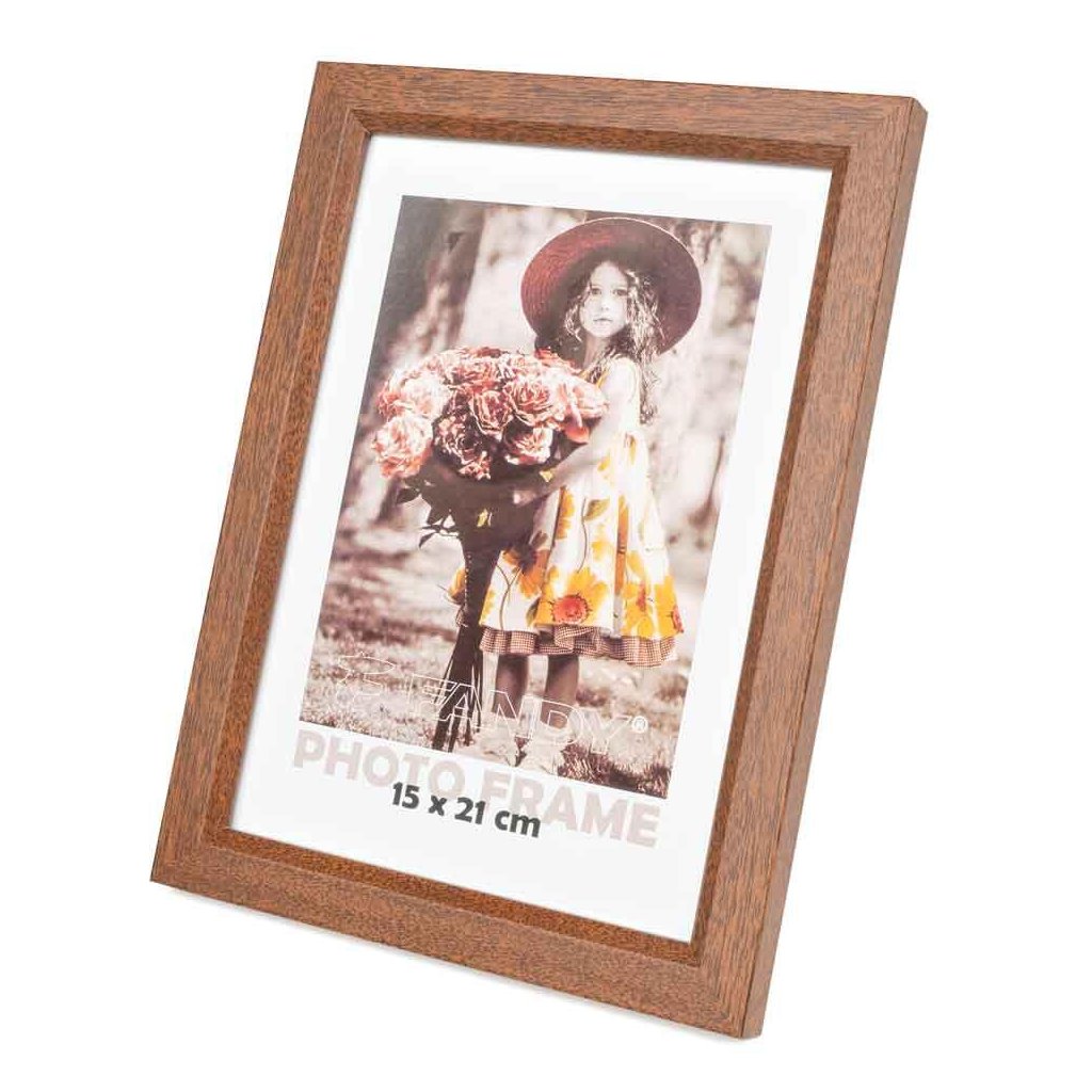 Vzpomínejte na své nejkrásnější okamžiky s tímto elegantním fotorámečkem z MDF v tmavě hnědém provedení v dekoru dřeva. Rámeček má jednoduchý, ale nadčasový design, který se hodí do každého interiéru. Je ideální na fotografii o rozměrech 15 x 21 cm. Celý rámeček má rozměr 18 x 24 cm, přičemž šířka lišty je 2 cm. Rámeček lze postavit na komodu, poličku nebo noční stolek, a také ho můžete zavěsit na zeď, a to jak horizontálně, tak i vertikálně. Fotografie je chráněna sklem a jednoduše se vkládá ze zadní strany.Doplňkové parametry