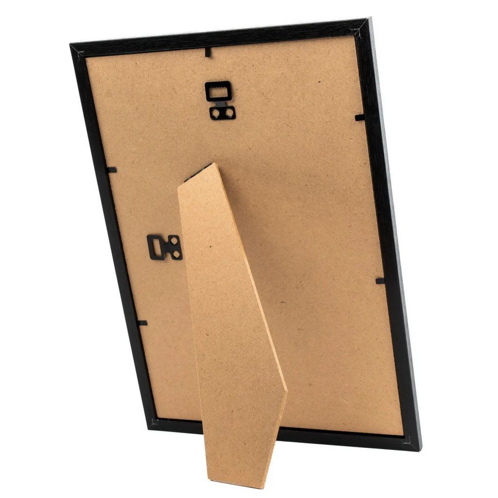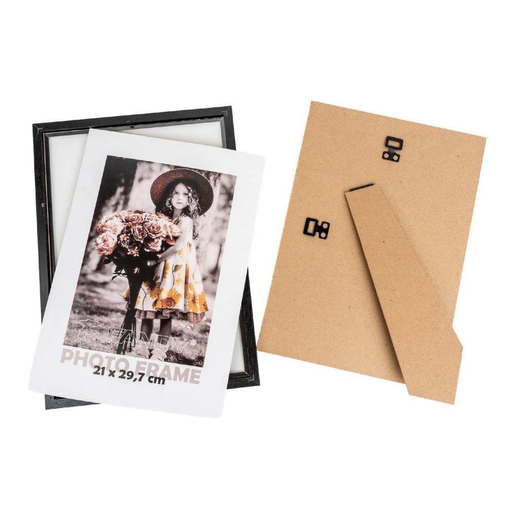 Vzpomínejte na své nejkrásnější okamžiky s tímto elegantním fotorámečkem z MDF ve černém provedení v dekoru dřeva. Rámeček má jednoduchý, ale nadčasový design, který se hodí do každého interiéru. Je ideální na fotografii o rozměrech 21 x 29,7 cm. Celý rámeček má rozměr 23 x 32 cm, přičemž šířka lišty je 1,5 cm. Rámeček lze postavit na komodu, poličku nebo noční stolek, a také ho můžete zavěsit na zeď, a to jak horizontálně, tak i vertikálně. Fotografie je chráněna sklem a jednoduše se vkládá ze zadní strany.Doplňkové parametry