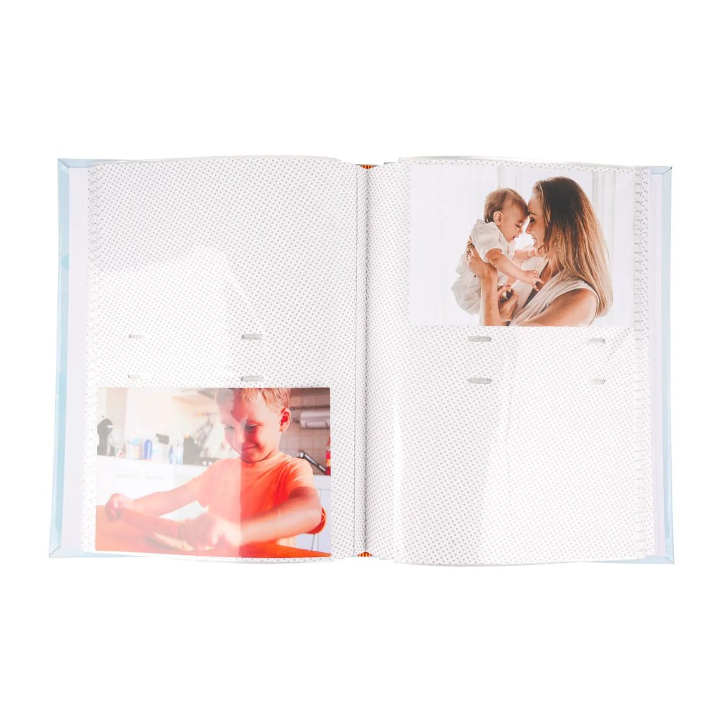 Uchovejte si vzpomínky na dětství ve fotoalbu s roztomilým dětským motivem v modré barvě. Díky šité vazbě a pevnému laminovanému papíru je album velmi odolné. Pojme až 100 fotografií ve formátu 10 x 15 cm, které se vkládají dvě nad sebe. U každé fotografie je navíc místo pro vložení popisku.Doplňkové parametry