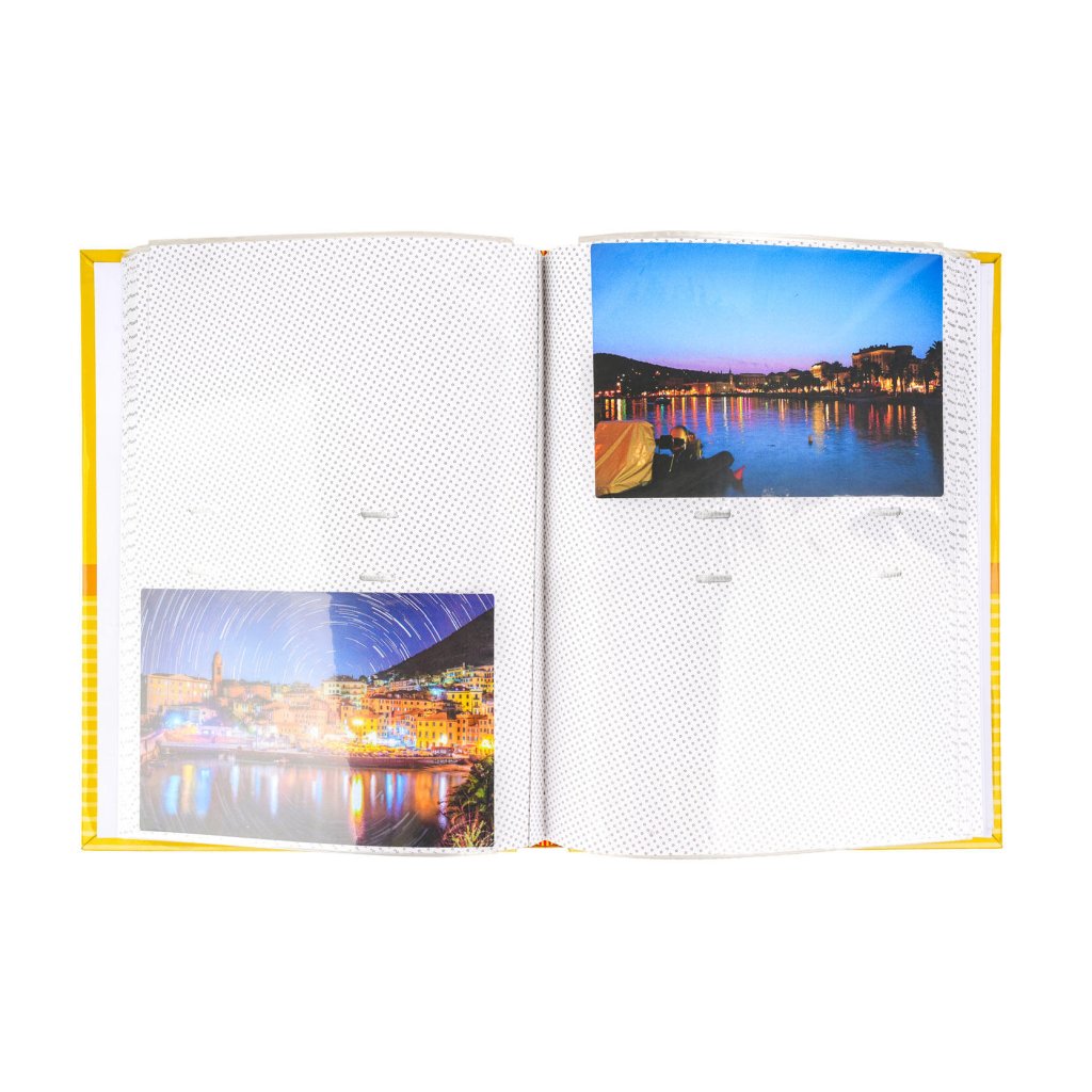 Uchovejte si vzpomínky do fotoalba ve žluté barvě s květinovým motivem, které vám kdykoli připomenou jedinečné zážitky. Pevné desky z laminovaného papíru a šitá vazba zaručují odolnost a dlouhou životnost. Album pojme až 100 fotografií ve formátu 10 x 15 cm, které se vkládají dvě nad sebe. Mezi fotografiemi je navíc prostor pro vlastní popisky, díky kterým si snadno uchováte všechny důležité okamžiky.Doplňkové parametry