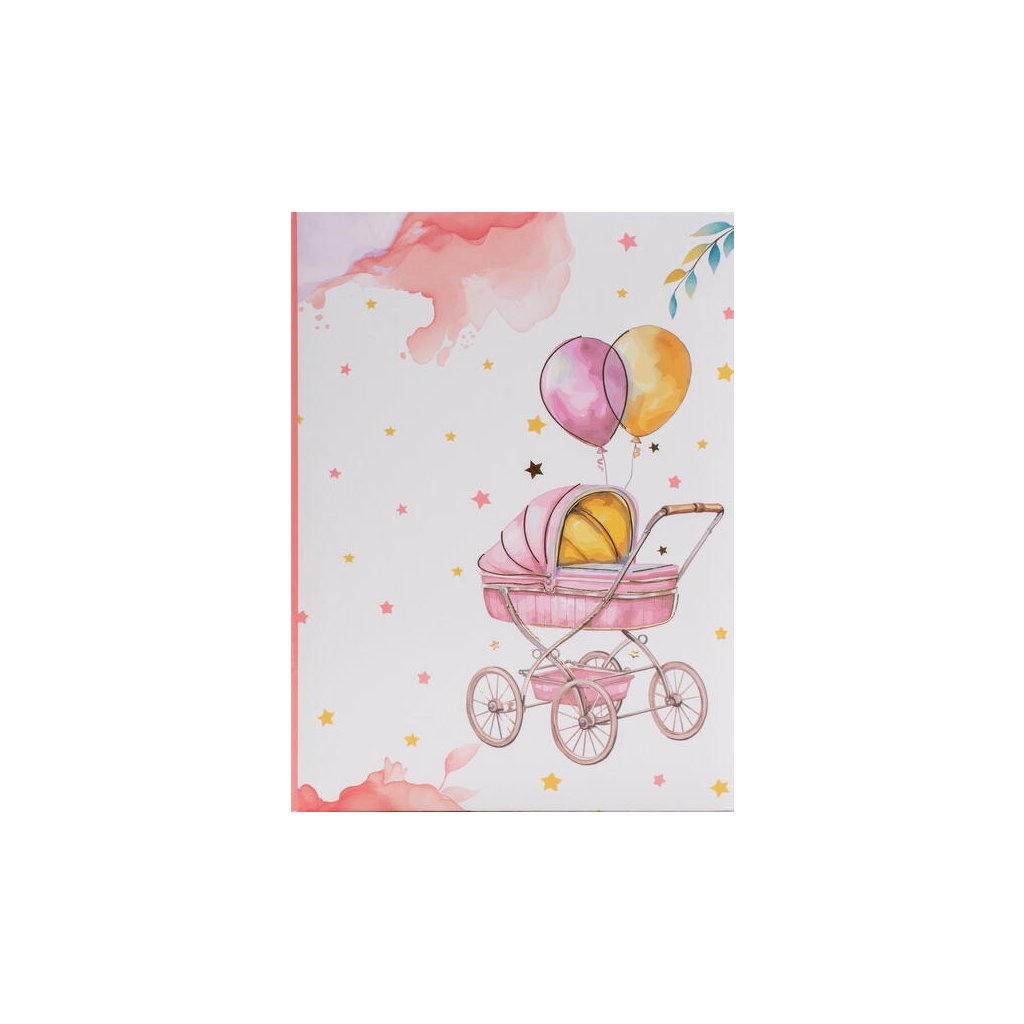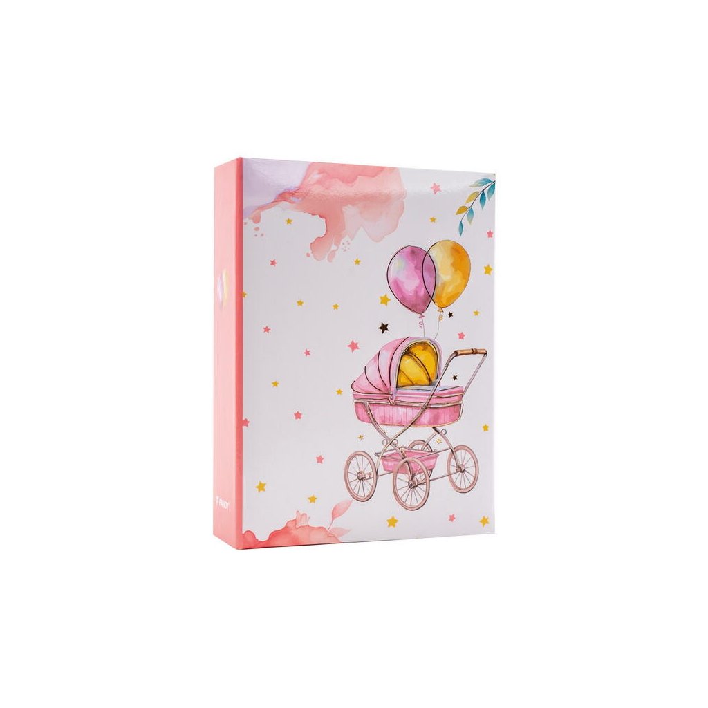 Jedná se o malé a kompaktní dětské fotoalbum s laminovanou obálkou ve světlých barvách (bílá, růžová, žlutá). Album má svařovanou vazbu ve formě knihy. Je ideální pro uchování 100 fotografií formátu 10 x 15 cm, které se vkládají zasouváním, a neumožňuje popisky. Listy jsou vyrobeny z bílého PVC/PP materiálu. Na obálce je vyobrazen roztomilý dětský motiv s retro kočárkem a balónky v odstínech. Album je skvělým dárkem pro novopečené rodiče k uchování vzpomínek na první měsíce a roky života dítěte.Doplňkové parametry