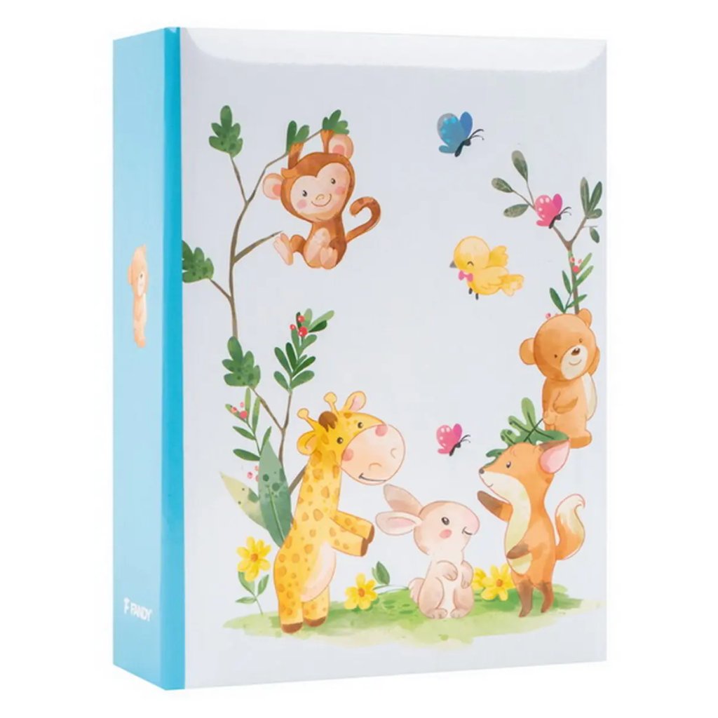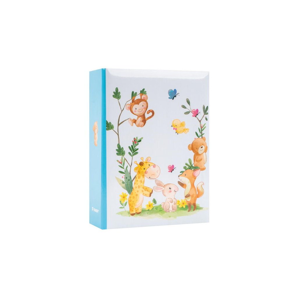 Jedná se o malé a kompaktní dětské fotoalbum s laminovanou obálkou v modré barvě. Album má svařovanou vazbu ve formě knihy. Je ideální pro uchování 100 fotografií formátu 10 x 15 cm, které se vkládají zasouváním, a neumožňuje popisky. Listy jsou vyrobeny z bílého PVC/PP materiálu. Na obálce je vyobrazen roztomilý dětský motiv s veselými mláďaty safari zvířat. Album je skvělým dárkem pro novopečené rodiče k uchování vzpomínek na první měsíce a roky života dítěte.Doplňkové parametry