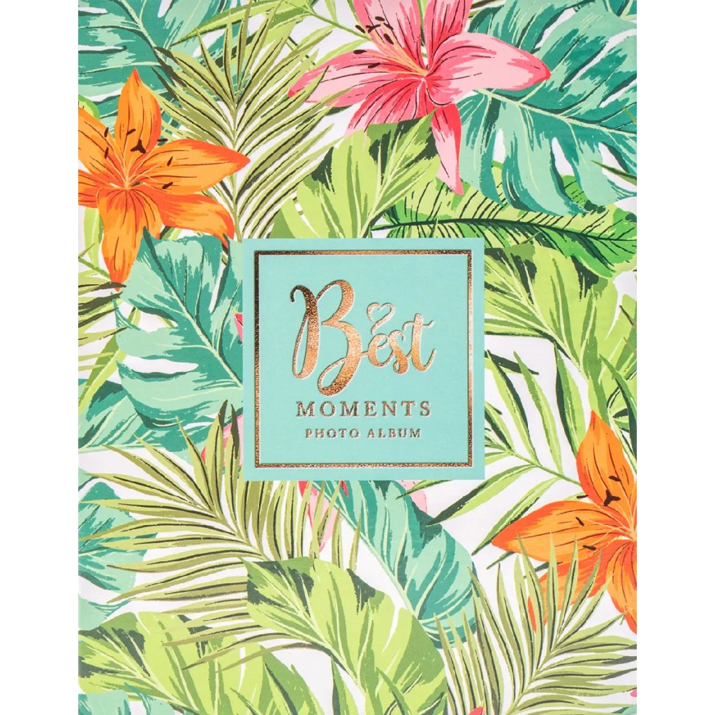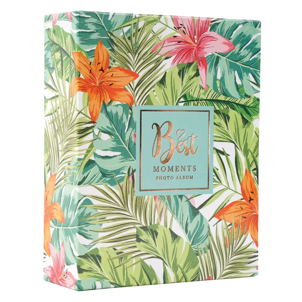 Uchovejte si své vzpomínky z dovolené v tomto elegantním fotoalbu, které má na obalu motiv tropických listů a květin s nápisem "Best moments". Pevné desky z laminovaného papíru a svařovaná vazba zaručují odolnost a dlouhou životnost. Album pojme až 100 fotografií ve formátu 10 x 15 cm, které se vkládají jedna na stranu.Doplňkové parametry