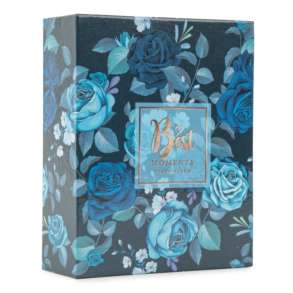 Uchovejte si své vzpomínky v tomto elegantním fotoalbu v modrém dekoru, které má na obalu motiv květin s nápisem "Best moments". Pevné desky z laminovaného papíru a svařovaná vazba zaručují odolnost a dlouhou životnost. Album pojme až 100 fotografií ve formátu 10 x 15 cm, které se vkládají jedna na stranu.Doplňkové parametry