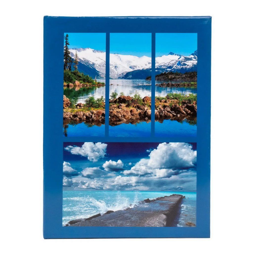 Jedná se o malé a kompaktní zasunovací fotoalbum s laminovanou obálkou s designem, který v sobě snoubí majestátnost vysokých hor a nekonečný klid vodní hladiny, vytvoří pro vaše snímky autentickou a nadčasovou kulisu. Obálka bez nápisů dává vyniknout krásným ilustracím. Album má svařovanou vazbu ve formě knihy. Je ideální pro uchování 100 fotografií formátu 10 x 15 cm, které se vkládají zasouváním (jedna fotografie na stránku), a neumožňuje popisky. Listy jsou vyrobeny z bílého PVC/PP materiálu.Doplňkové parametry