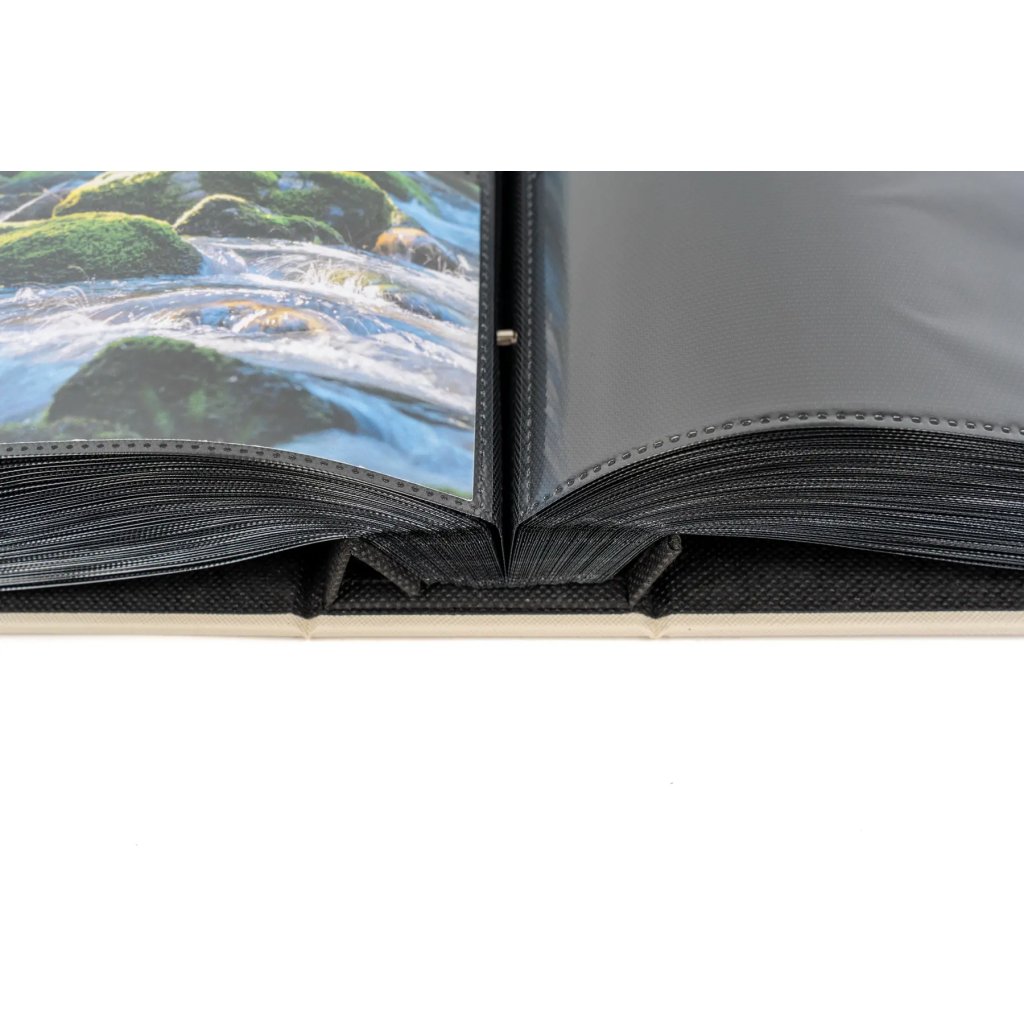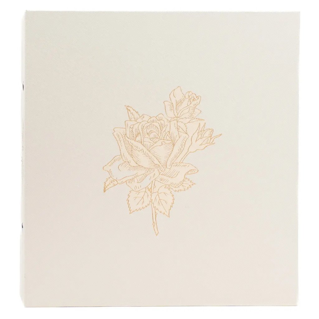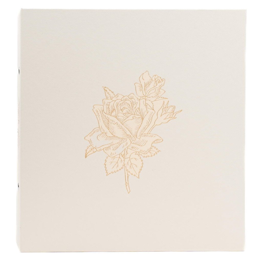 Luxusní svatební zasunovací fotoalbum v čistě bílém provedení zdobí jemná zlatá ražba s motivem rozvetlé růže, která se elegantně opakuje i na hřbetu alba. Toto velkoformátové album s mimořádnou kapacitou pro 1000 fotografií formátu 10 x 15 cm disponuje rozměry 31 x 33,5 cm a je opatřeno vysoce odolnou šroubovanou (nýtovanou) vazbou pro maximální stabilitu. Povrch obálky je potažen kvalitním textilem, který dodává albu slavnostní charakter, zatímco vnitřní černé PVC/PP listy bez popisek nechávají barvy vašich svatebních snímků dokonale vyniknout.Doplňkové parametry