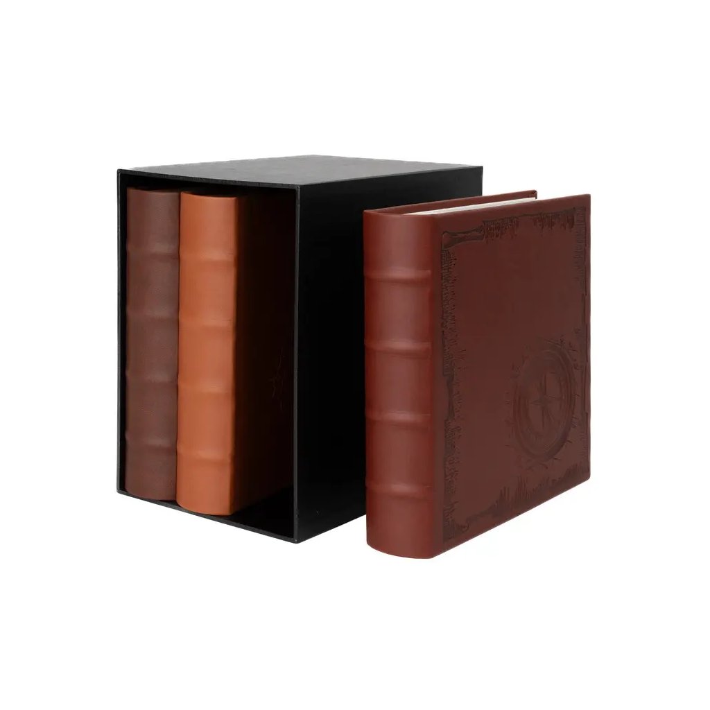 Jedná se o sadu tří fotoalb v ochranné krabičce. Alba mají šitou vazbu, která zaručuje jejich dlouhou životnost. Jsou určena pro 200 fotografií formátu 10 x 15 cm, které se do nich vkládají zasouváním dvě nad sebe. U každé fotografie je prostor pro popisky. Každé album má obálku z imitace kůže s vyražený kompasem a nápisem "Travel". Alba se dodávají v mixu barev: tmavě hnědé, světle hnědé a červenohnědé. Díky svému tématu jsou ideální pro uchování vzpomínek z cest. Rozměr každého alba je 24 x 22 cm, zatímco celá krabička má rozměry 24 x 23,5 x 17 cm.Doplňkové parametry