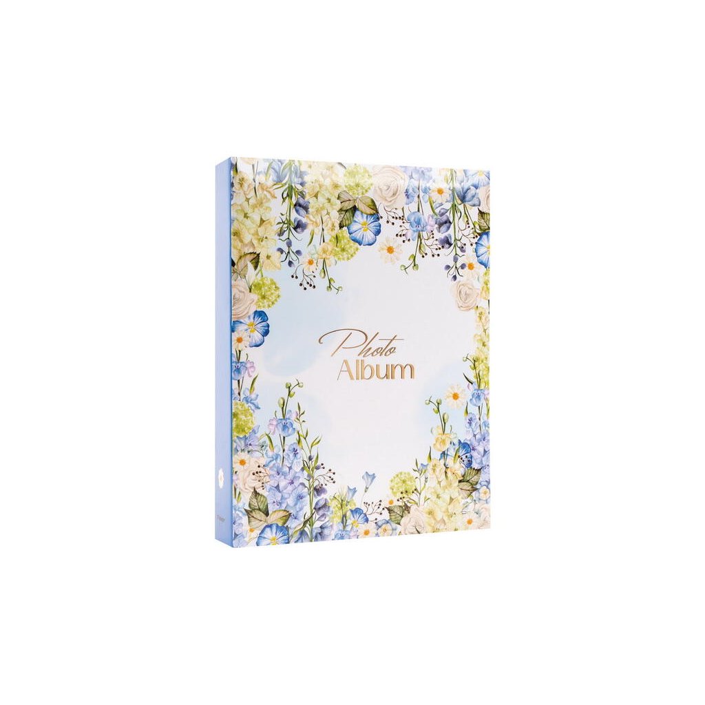 Jedná se o elegantní fotoalbum s laminovanou obálkou. Album má lepenou vazbu. Je ideální pro uchování 200 fotografií formátu 10 x 15 cm, které se vkládají zasouváním dvě nad sebou. Mezi fotografiemi je prostor pro vkládací popisky. Listy jsou vyrobeny z bílého papíru. Na obálce je vyobrazen romantický motiv tvořený věncem z jemných akvarelových květin v modrém provedení. Album je ideální pro uchování vzpomínek na jarní a letní události, jako jsou dovolené, svatby, rodinné oslavy nebo jiné cenné zážitky.Doplňkové parametry