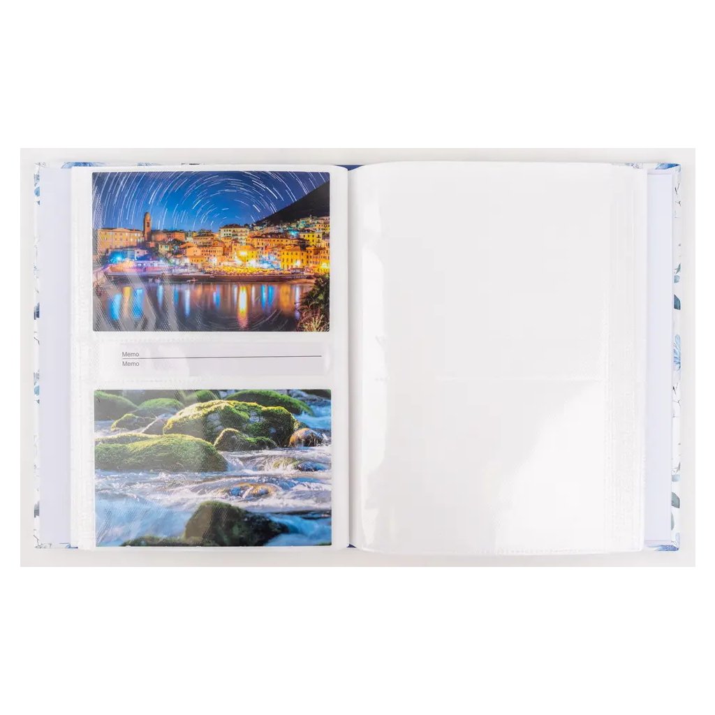 Jedná se o elegantní zasunovací fotoalbum s laminovanou obálkou v modro-bílých barvách. Album má svařovanou vazbu ve formě knihy. Je ideální pro uchování 200 fotografií formátu 10 x 15 cm, které se vkládají zasouváním dvě nad sebou. Mezi fotografiemi je prostor pro vkládací popisky. Listy jsou vyrobeny z bílého PVC/PP materiálu. Na obálce je vyobrazen decentní květinový motiv s akvarelovým vzorem drobných květů a listů v odstínech modré. Díky svému jemnému a neutrálnímu designu je album ideální pro uchování vzpomínek z různých událostí, jako jsou dovolené, rodinné oslavy nebo jiné cenné zážitky.Doplňkové parametry