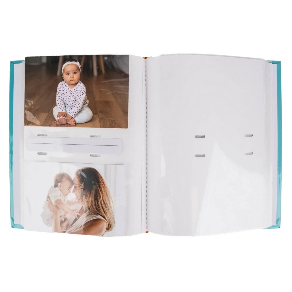 Toto zasunovací fotoalbum v provedení světle modré barvy s dětským motivem pojme 200 fotografií o formátu 10 x 15 cm. Album ve vazbě šitá kniha má laminovanou papírovou obálku a umožňuje ukládat 2 fotografie na stránku. Bílé papírové listy obsahují prostor pro vepsání popisek k fotografiím. Rozměr alba činí 19 x 25 cm.Doplňkové parametry