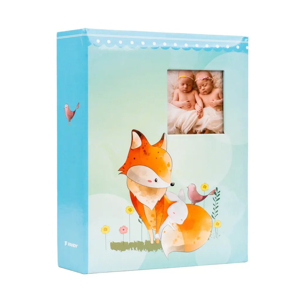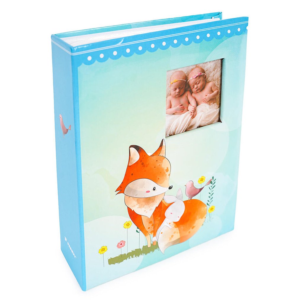 Uchovejte si vzpomínky na dětství ve fotoalbu s roztomilou liškou v modré barvě. Album má pevné desky z laminovaného papíru a svařovanou vazbu, díky čemuž je velmi odolné. Pojme až 200 fotografií ve formátu 10 x 15 cm, které se vkládají dvě nad sebe do průhledných kapes. Album také nabízí možnost vložit vlastní fotografii na obal, což z něj udělá jedinečnou a osobní památku.Doplňkové parametry