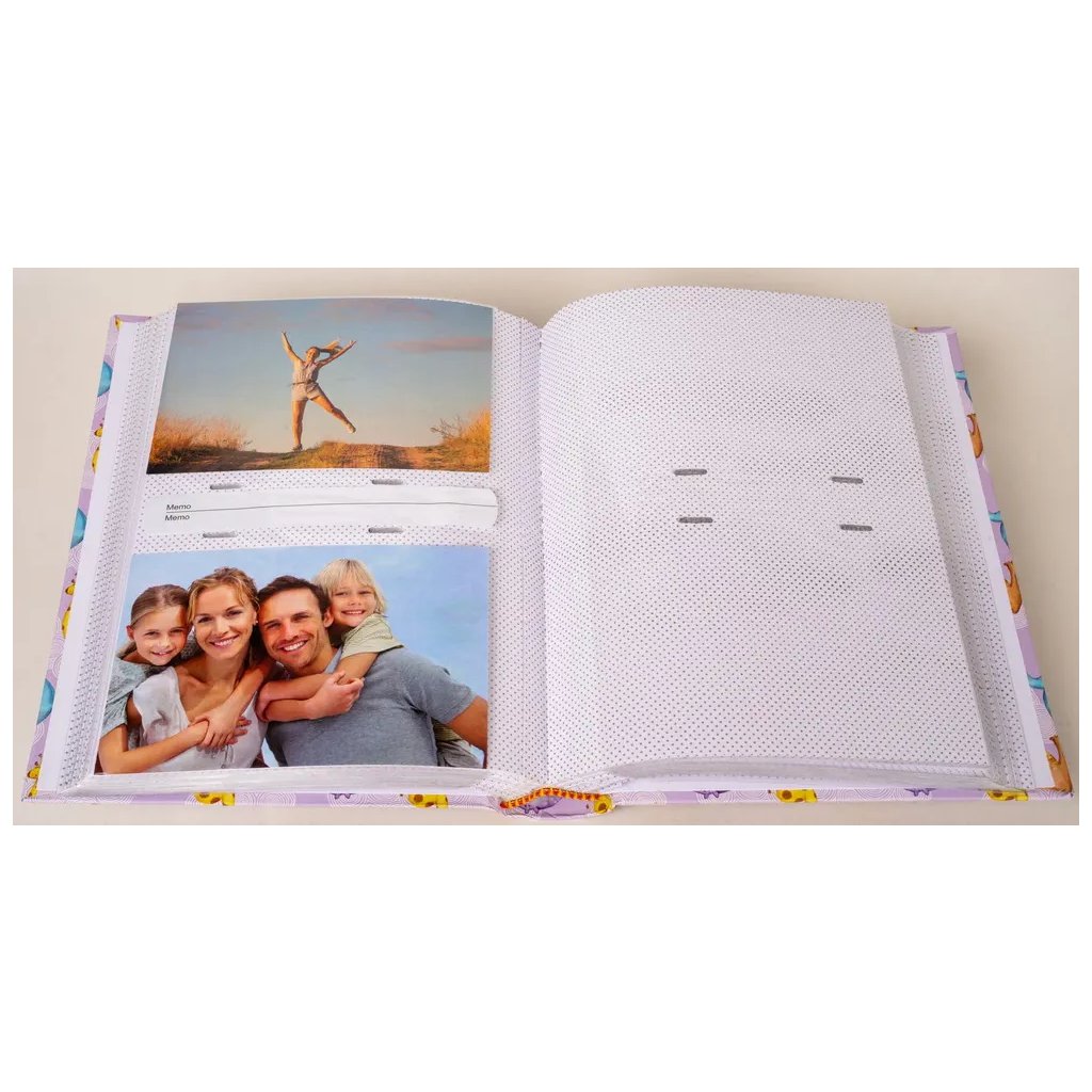 Uchovejte si ty nejkrásnější chvíle z dětství ve fotoalbu s motivem zvířátek ve fialové barvě. Díky šité vazbě a kvalitnímu laminovanému papíru je album velmi odolné a pojme až 200 fotografií ve formátu 10 x 15 cm. Fotografie se vkládají dvě nad sebe a u každé z nich je místo na krátký popisek, abyste si mohli zaznamenat důležité okamžiky. Album také nabízí možnost vložit vlastní fotografii na obal, čímž se stane jedinečnou památkou, ke které se budete rádi vracet.Doplňkové parametry