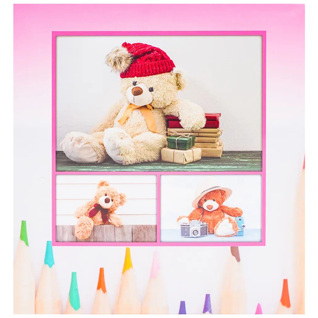 Uchovejte si ty nejkrásnější chvíle z dětství ve fotoalbu s roztomilým dětským motivem v růžové barvě. Díky šité vazbě a kvalitnímu laminovanému papíru je album velmi odolné. Pojme až 200 fotografií ve formátu 10 x 15 cm, které se vkládají dvě nad sebe. U každé fotografie je navíc prostor na vlastní poznámky.Doplňkové parametry