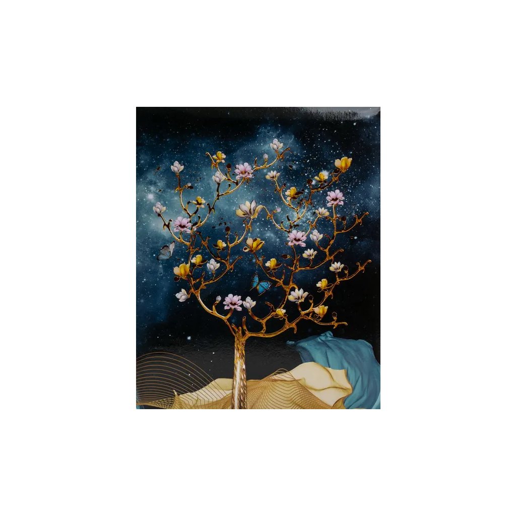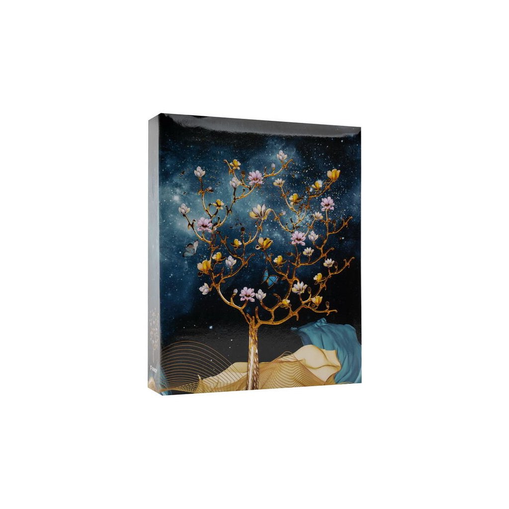 Jedná se o elegantní zasunovací fotoalbum s laminovanou obálkou v tmavě modrých tónech se zlatými akcenty. Album má svařovanou vazbu ve formě knihy. Je ideální pro uchování 200 fotografií formátu 10 x 15 cm, které se vkládají zasouváním dvě nad sebou, a neumožňuje popisky. Listy jsou vyrobeny z bílého PVC/PP materiálu. Na obálce je vyobrazen moderní, fantastický motiv (zlatý strom na hvězdném pozadí). Díky svému elegantnímu a neutrálnímu designu je album ideální pro uchování vzpomínek z cest, svateb nebo jiných cenných zážitků.Doplňkové parametry