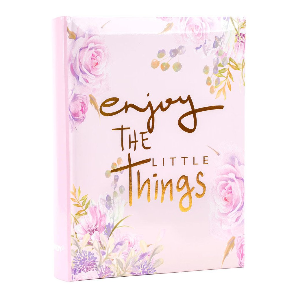 Uchovejte si své vzpomínky v tomto stylovém fotoalbu v růžové barvě s květinovým motivem a nápisem "Enjoy The Little Things". Pevné desky z laminovaného papíru a šitá vazba zaručují odolnost a dlouhou životnost. Album pojme až 200 fotografií ve formátu 10 x 15 cm, které se vkládají dvě nad sebe. Mezi fotografiemi je navíc prostor pro vlastní popisky, díky kterým si snadno uchováte všechny důležité okamžiky.Doplňkové parametry