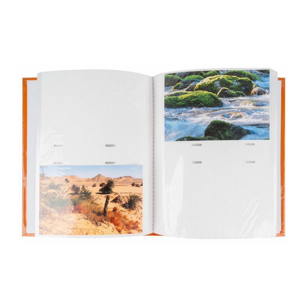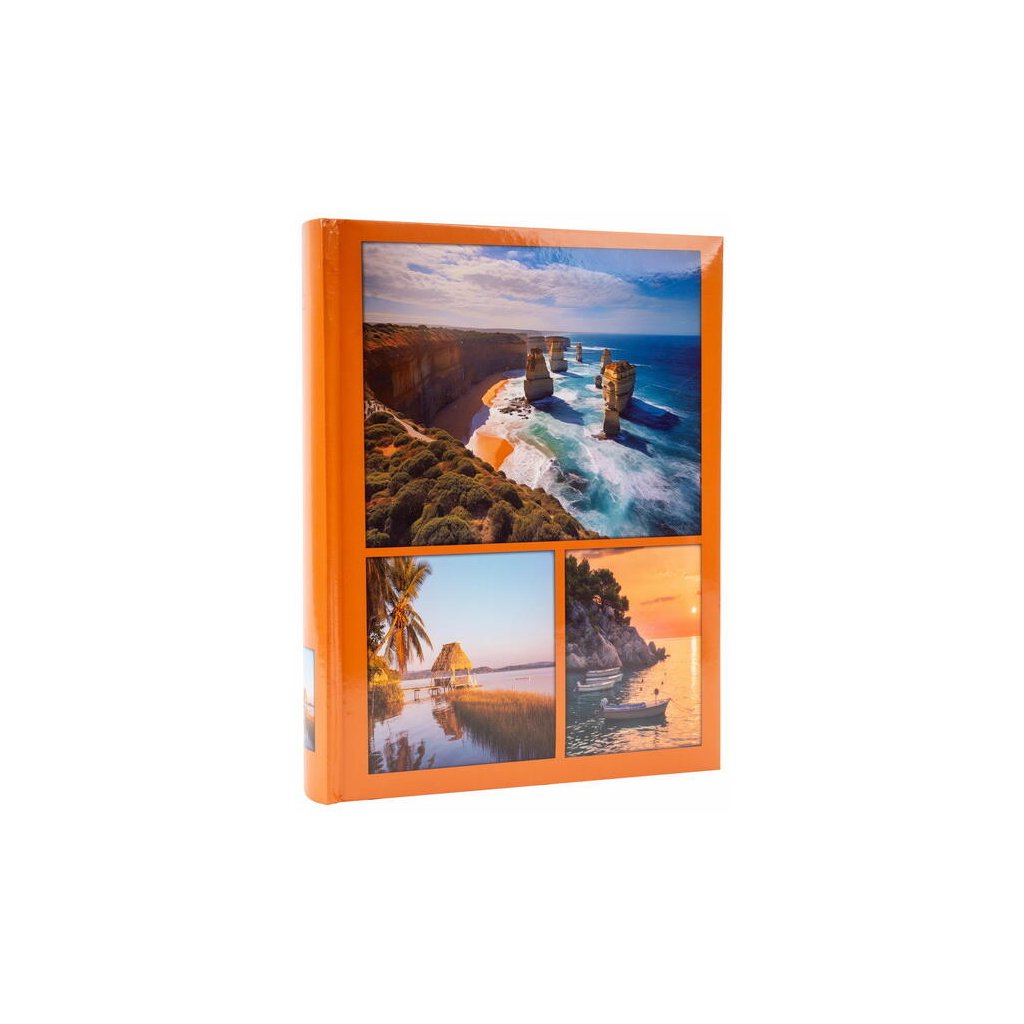 Uchovejte si své vzpomínky z cest v tomto stylovém fotoalbu v oranžové barvě s motivem přírody. Pevné desky z laminovaného papíru a šitá vazba zaručují odolnost a dlouhou životnost. Album pojme až 200 fotografií ve formátu 10 x 15 cm, které se vkládají dvě nad sebe. Mezi fotografiemi je navíc prostor pro vlastní popisky, díky kterým si snadno uchováte všechny důležité okamžiky.Doplňkové parametry
