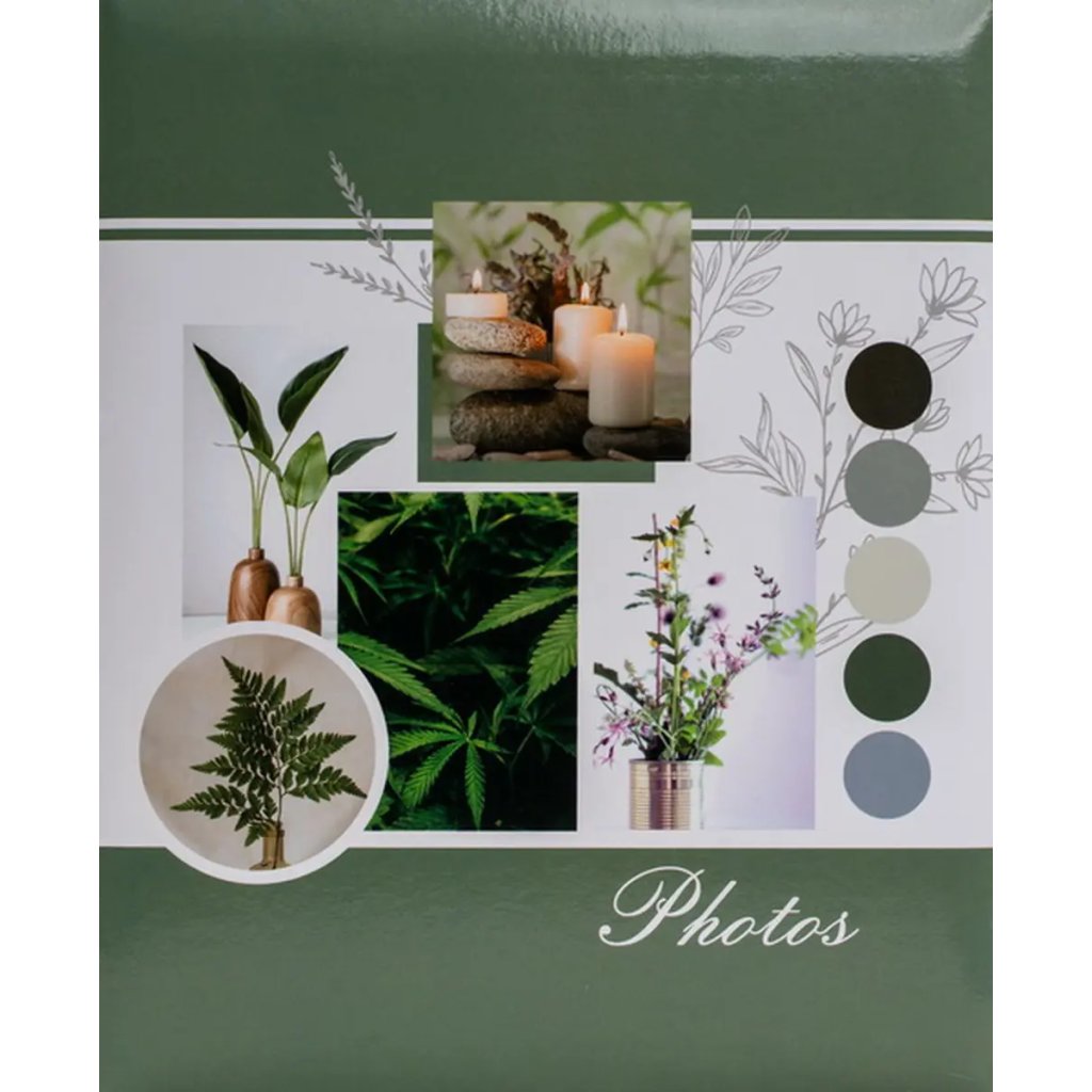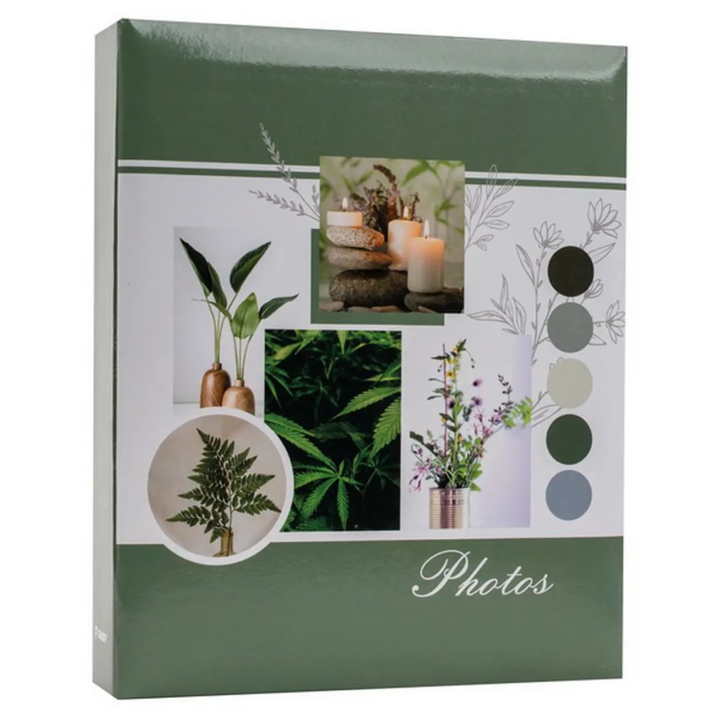 Jedná se o elegantní zasunovací fotoalbum s laminovanou obálkou v zeleno-bílých barvách. Album má svařovanou vazbu ve formě knihy. Je ideální pro uchování 200 fotografií formátu 10 x 15 cm, které se vkládají zasouváním dvě nad sebou, a neumožňuje popisky. Listy jsou vyrobeny z bílého PVC/PP materiálu. Na obálce je vyobrazen přírodní motiv ve stylu koláže, s odstíny zelené a šedé. Díky svému klidnému a neutrálnímu designu je album ideální pro uchování vzpomínek na dovolené, přírodu, wellness pobyty nebo jiné cenné zážitky.Doplňkové parametry