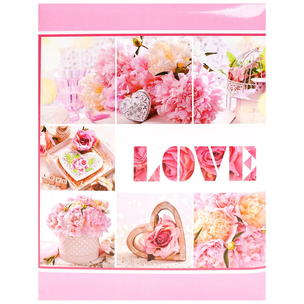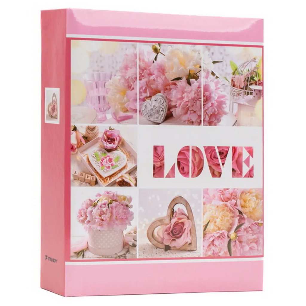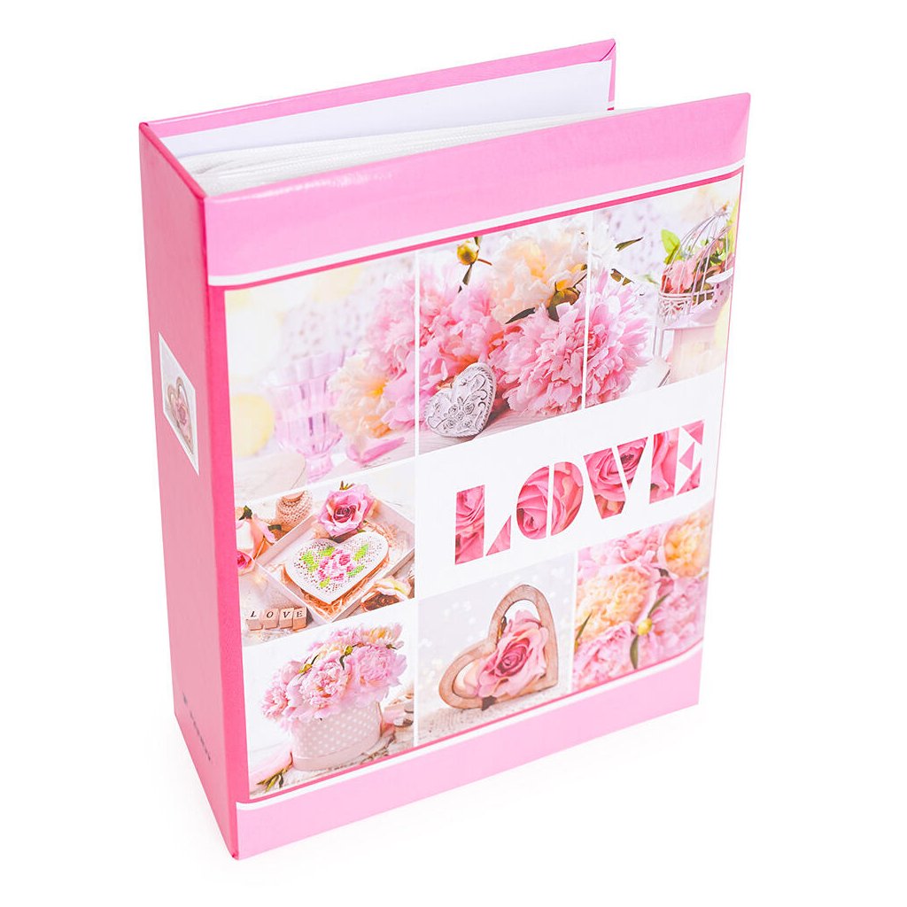 Uchovejte si své vzpomínky v tomto romantickém fotoalbu v něžných růžových tónech s motivem lásky a přátelství. Krásný design s nápisem "LOVE" a jemnými fotografiemi květin, srdíček a romantických detailů vytvoří dokonalý rámec pro vaše nejcennější okamžiky. Pevné desky z laminovaného papíru a svařovaná vazba zaručují odolnost a dlouhou životnost. Album pojme až 200 fotografií ve formátu 10 x 15 cm, které se vkládají dvě nad sebe díky jednoduchému zasunovacímu systému bez lepení.Doplňkové parametry