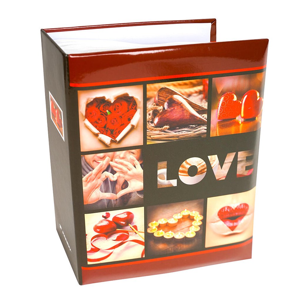 Uchovejte si své vzpomínky v tomto vášnivém fotoalbu v teplých červeno-hnědých tónech s romantickým motivem lásky. Elegantní design s nápisem "LOVE" a atmosférickými fotografiemi srdíček, růží a intimních okamžiků dodá vašim vzpomínkám hloubku a vášeň. Pevné desky z laminovaného papíru a svařovaná vazba zaručují odolnost a dlouhou životnost. Album pojme až 200 fotografií ve formátu 10 x 15 cm, které se vkládají dvě nad sebe díky jednoduchému zasunovacímu systému bez lepení.Doplňkové parametry