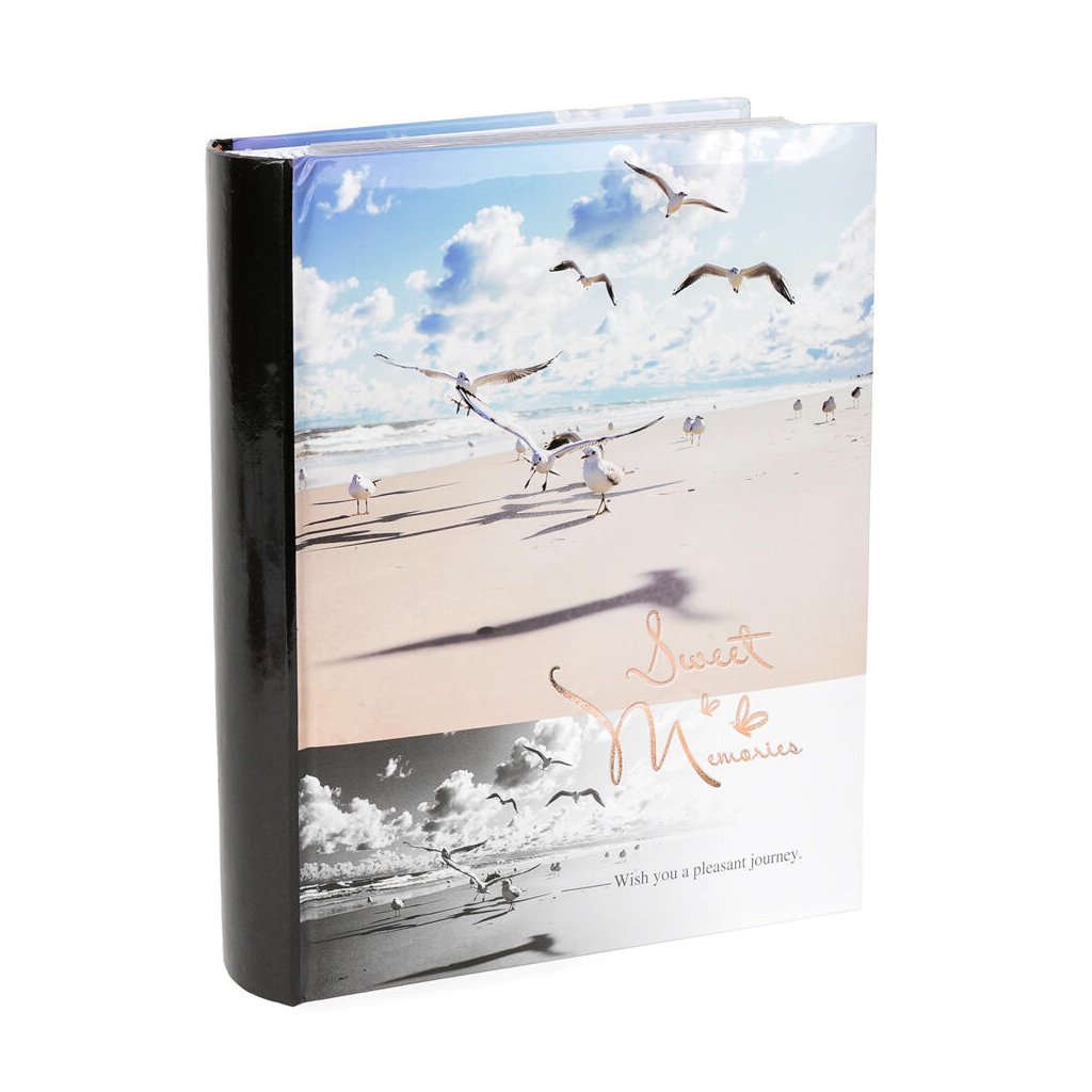 Uchovejte si své zážitky z dovolené v tomto elegantním fotoalbu, které má na obalu motiv pláže a nápis "Sweet Memories". Pevné desky z laminovaného papíru a šitá vazba zaručují odolnost a dlouhou životnost. Album pojme až 200 fotografií ve formátu 10 x 15 cm, které se vkládají dvě nad sebe. Mezi fotografiemi je navíc prostor pro vlastní popisky, díky kterým si snadno uchováte všechny důležité okamžiky.Doplňkové parametry