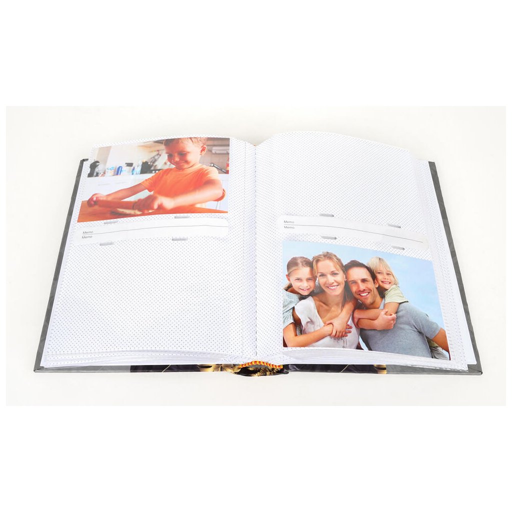 Uchovejte si své vzpomínky v tomto elegantním fotoalbu v černém dekoru s květinovým motivem a nápisem "Sweet Memories". Pevné desky z laminovaného papíru a šitá vazba zaručují odolnost a dlouhou životnost. Album pojme až 200 fotografií ve formátu 10 x 15 cm, které se vkládají dvě nad sebe. Mezi fotografiemi je navíc prostor pro vlastní popisky, díky kterým si snadno uchováte všechny důležité okamžiky.Doplňkové parametry