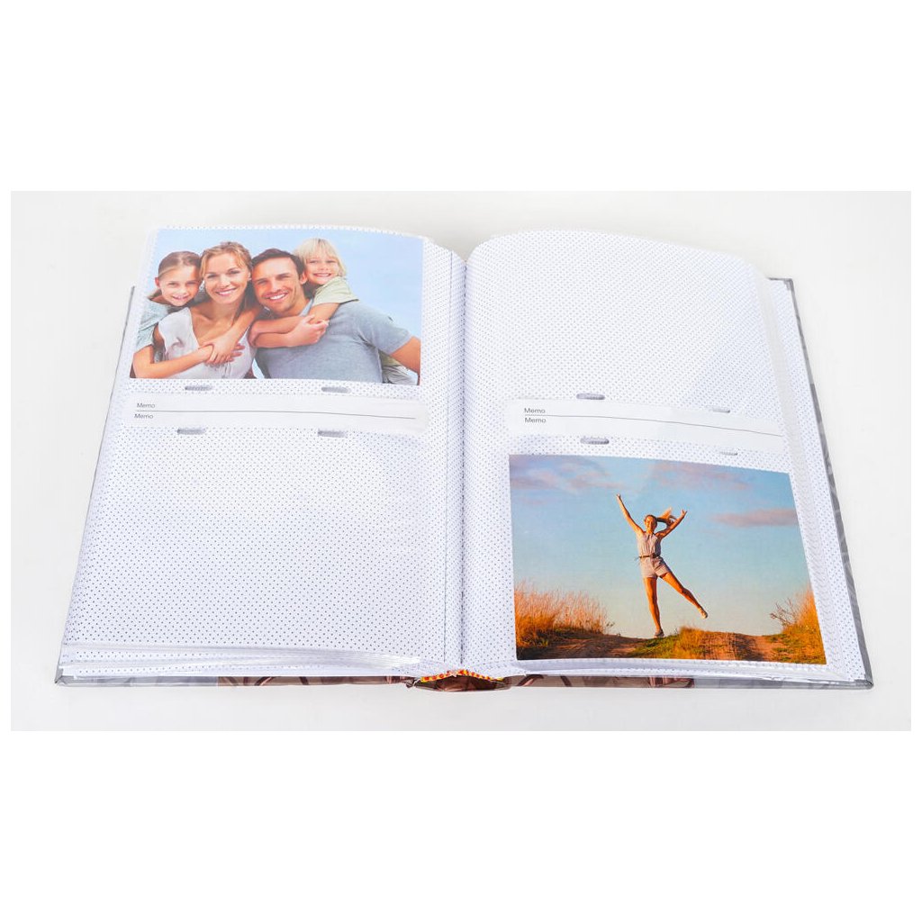 Uchovejte si své vzpomínky v tomto elegantním fotoalbu v hnědém dekoru s květinovým motivem a nápisem "Sweet Memories". Pevné desky z laminovaného papíru a šitá vazba zaručují odolnost a dlouhou životnost. Album pojme až 200 fotografií ve formátu 10 x 15 cm, které se vkládají dvě nad sebe. Mezi fotografiemi je navíc prostor pro vlastní popisky, díky kterým si snadno uchováte všechny důležité okamžiky.Doplňkové parametry