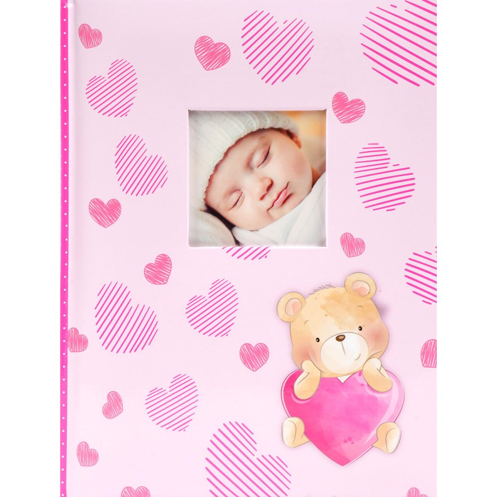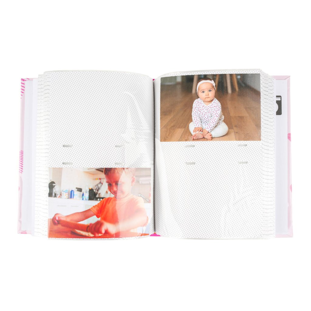 Uchovejte si všechny důležité okamžiky z dětství ve fotoalbu s dětským motivem v růžové barvě. Díky šité vazbě a kvalitnímu laminovanému papíru je album velmi odolné. Pojme až 300 fotografií ve formátu 10 x 15 cm, které se vkládají dvě nad sebe. Mezi fotografiemi je navíc místo pro vložení popisků. Album má také možnost vyměnit fotografii na obalu, což z něj udělá jedinečnou památku.Doplňkové parametry