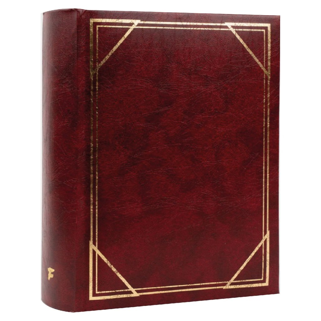 Jedná se o elegantní fotoalbum s vinylovou koženkou ve vínové barvě s jemnou texturou. Album má na přední straně zlatý ozdobný rámeček a šitou vazbu, která zaručuje jeho dlouhou životnost. Je určeno pro 300 fotografií formátu 10 x 15 cm, které se vkládají zasouváním dvě nad sebou. Mezi fotografiemi je prostor pro vkládací popisky. Listy jsou vyrobeny z bílého papíru. Díky svému klasickému a luxusnímu vzhledu je album ideální pro uchování rodinných vzpomínek, významných událostí či dovolených.Doplňkové parametry