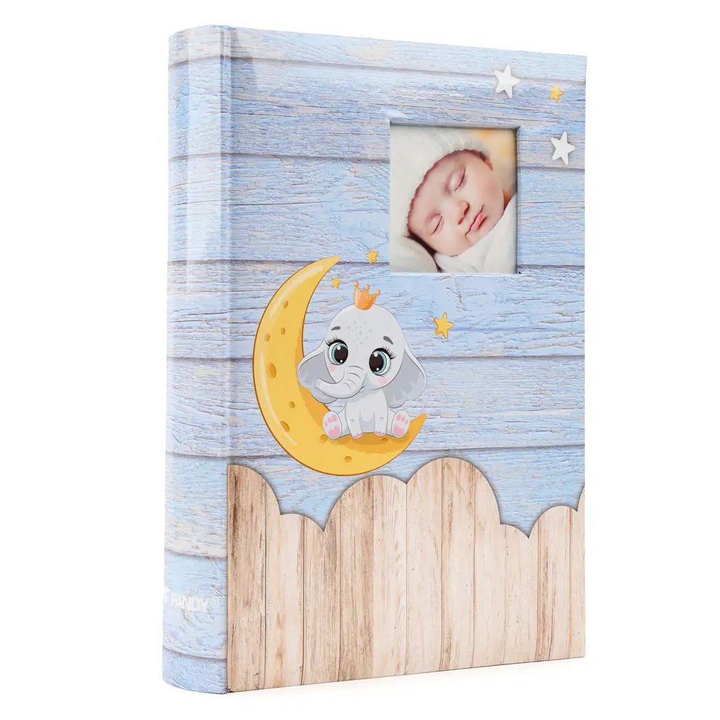 Uchovejte všechny důležité okamžiky z dětství ve fotoalbu s roztomilým slonem v modré barvě. Díky šité vazbě a kvalitnímu laminovanému papíru je album velmi odolné a pojme až 300 fotografií ve formátu 10 x 15 cm. Fotografie se vkládají dvě nad sebou a u každé z nich je navíc místo pro vlastní poznámky. Album nabízí možnost vyměnit fotografii na obalu, což z něj udělá jedinečnou a osobní památku, ke které se budete rádi vracet.Doplňkové parametry