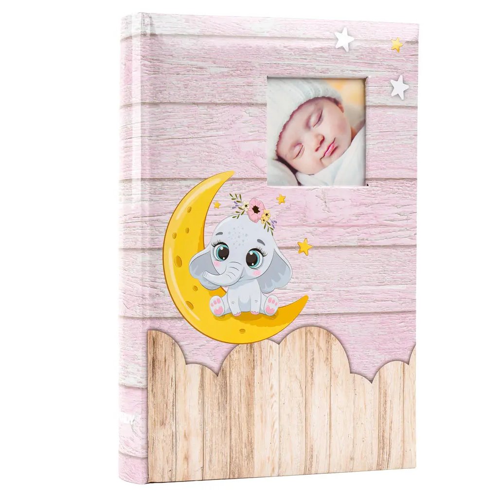 Uchovejte všechny důležité okamžiky z dětství ve fotoalbu s roztomilým slonem v růžové barvě. Díky šité vazbě a kvalitnímu laminovanému papíru je album velmi odolné a pojme až 300 fotografií ve formátu 10 x 15 cm. Fotografie se vkládají dvě nad sebou a u každé z nich je navíc místo pro vlastní poznámky. Album nabízí možnost vyměnit fotografii na obalu, což z něj udělá jedinečnou a osobní památku, ke které se budete rádi vracet.Doplňkové parametry