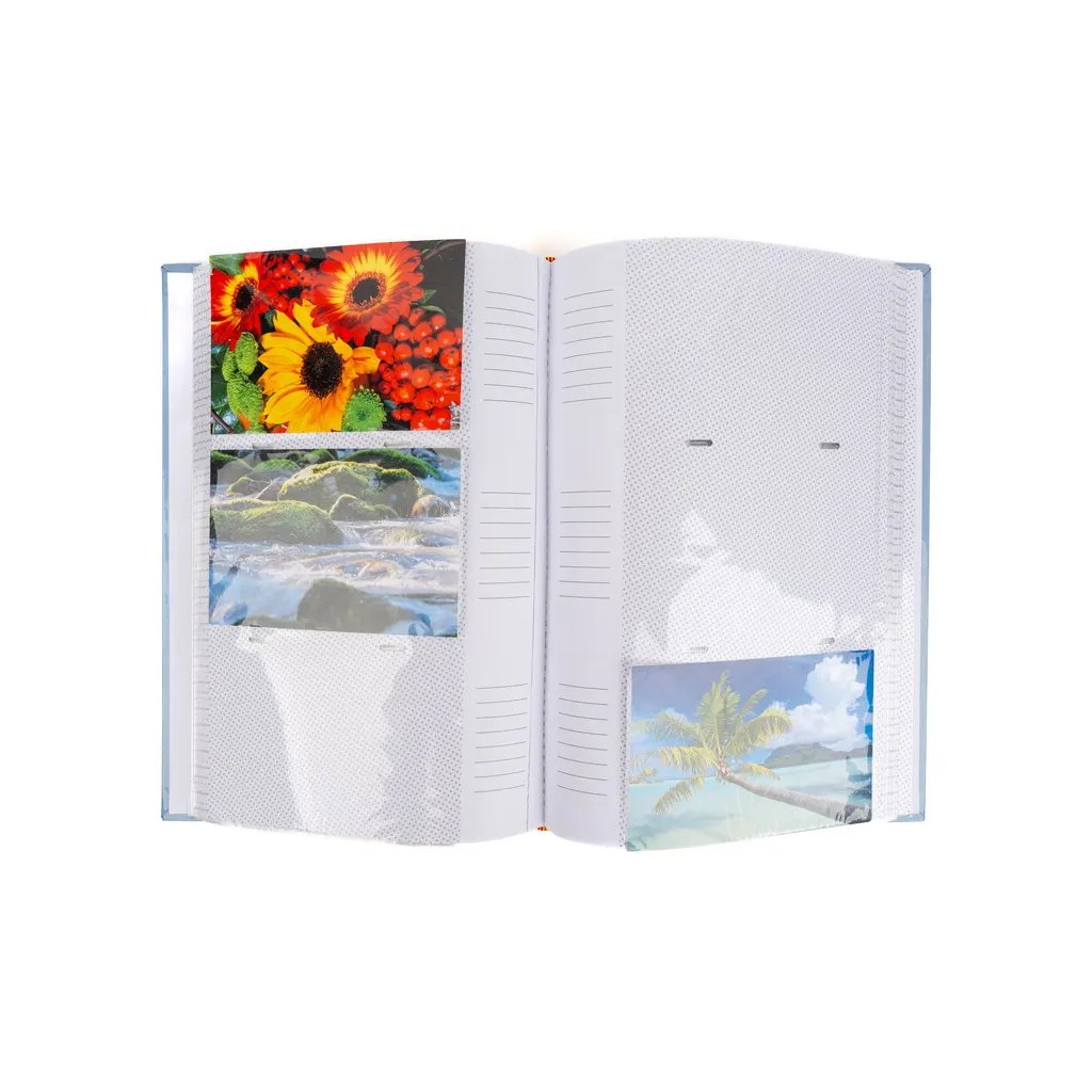Uchovejte si své zážitky z cest v tomto stylovém fotoalbu v modré barvě s motivem přírody. Pevné desky z laminovaného papíru a šitá vazba zaručují odolnost a dlouhou životnost. Album pojme až 300 fotografií ve formátu 10 x 15 cm, které se vkládají tři nad sebe. Mezi fotografiemi je navíc prostor pro vlastní popisky, díky kterým si snadno uchováte všechny důležité okamžiky.Doplňkové parametry