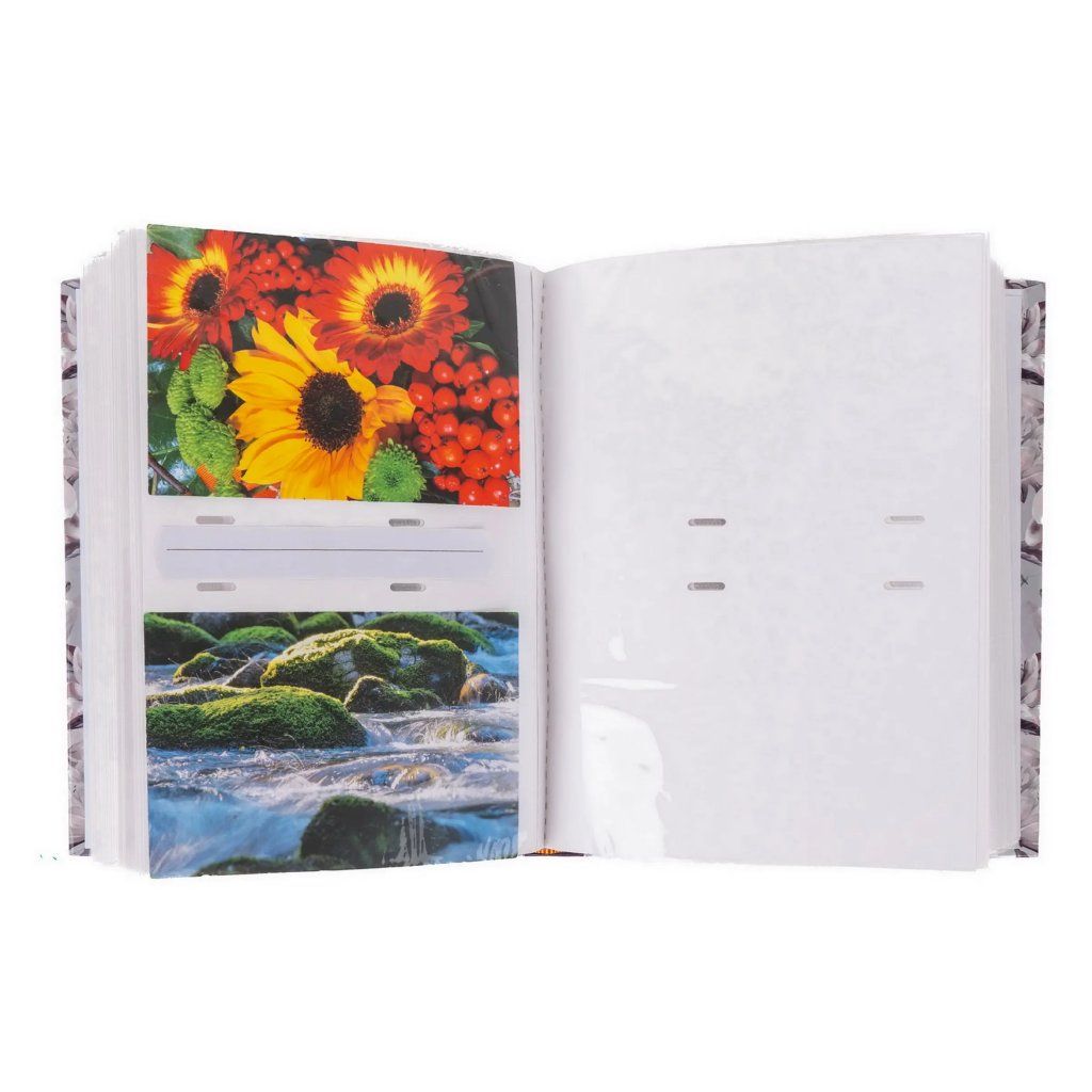 Uchovejte si své vzpomínky v tomto fotoalbu s květinovým motivem a nápisem. Pevné desky z laminovaného papíru a šitá vazba zaručují odolnost a dlouhou životnost. Album pojme až 300 fotografií ve formátu 10 x 15 cm, které se vkládají dvě nad sebe. Mezi fotografiemi je navíc prostor pro vlastní popisky, díky kterým si snadno uchováte všechny důležité okamžiky.Doplňkové parametry