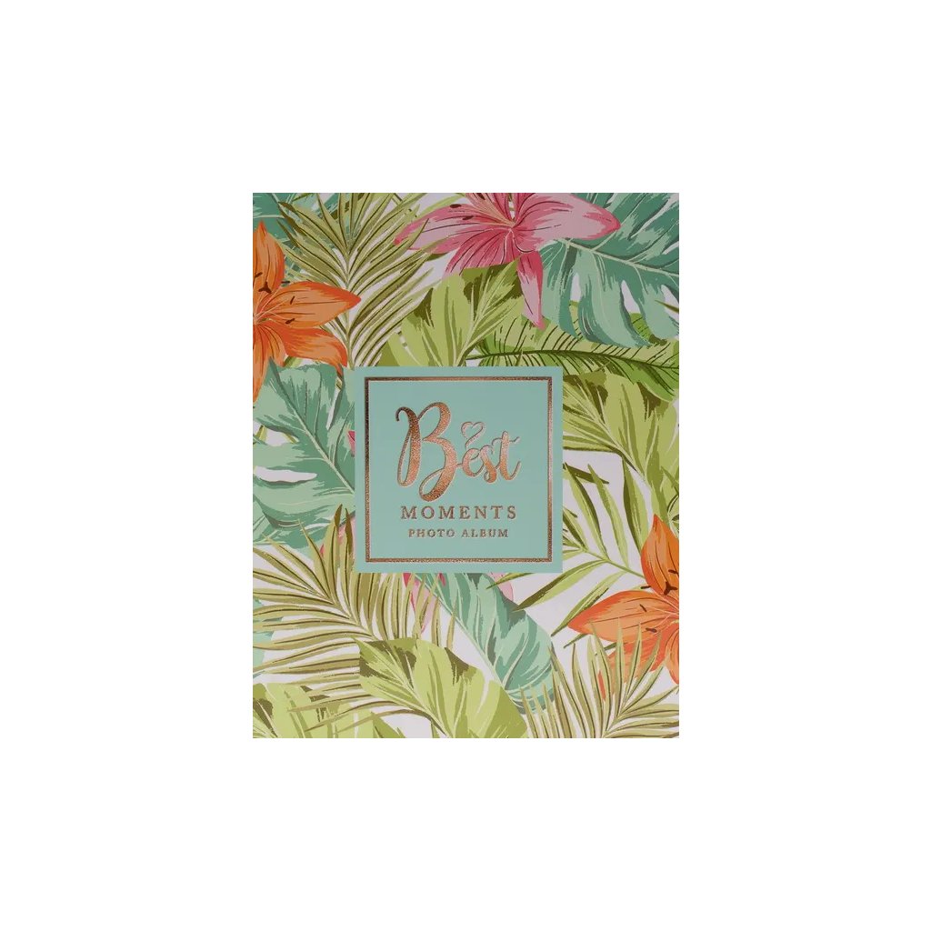 Uchovejte si své vzpomínky v tomto živém fotoalbu s krásnými barevnými liliemi v oranžových a růžových tónech mezi zelenými tropickými listy. Svěží botanický design s nápisem "Best Moments" v tyrkysovém rámečku dodá vašim vzpomínkám energii a radost. Pevné desky z laminovaného papíru a svařovaná vazba zaručují odolnost a dlouhou životnost. Album pojme až 300 fotografií ve formátu 10 x 15 cm, které se vkládají dvě nad sebe díky jednoduchému zasunovacímu systému bez lepení.Doplňkové parametry