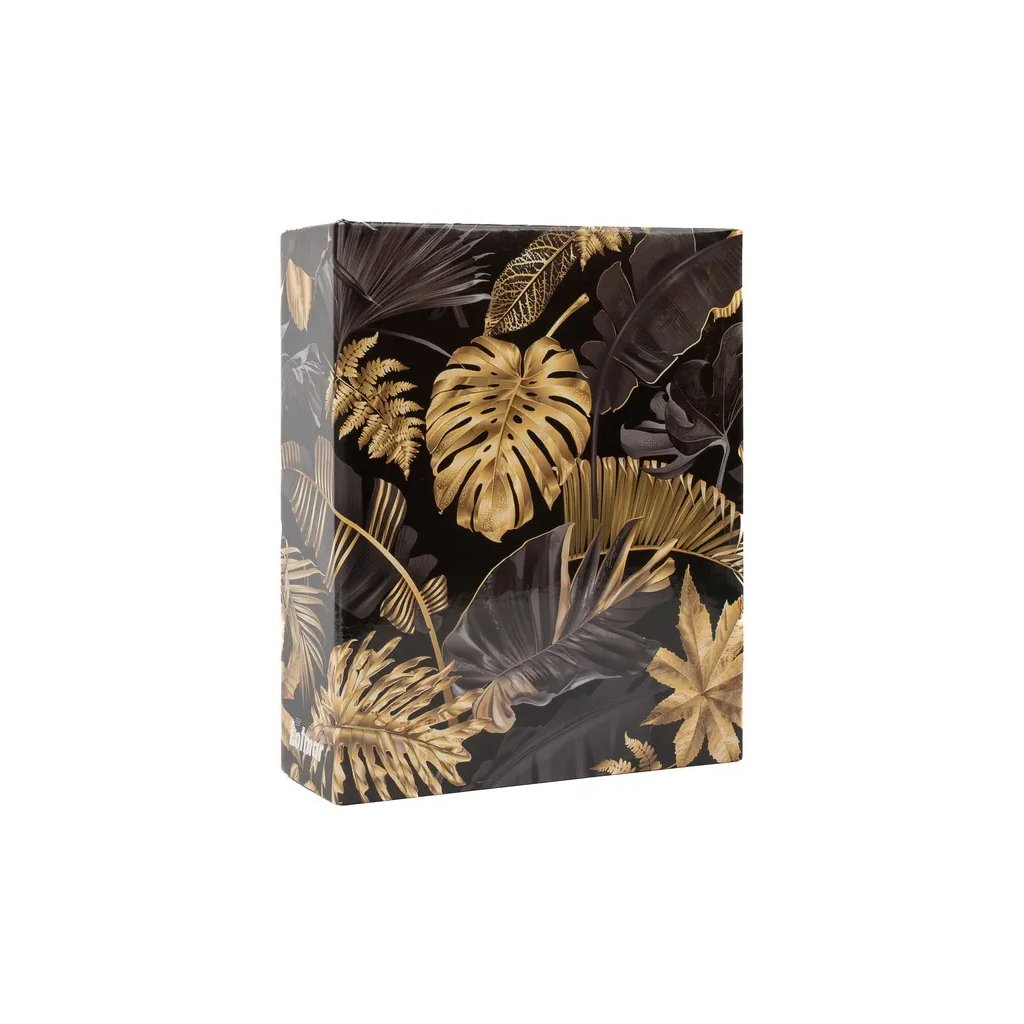 Uchovejte si své vzpomínky v tomto luxusním fotoalbu s elegantním vzorem tropických listů ve zlatých a bronzových tónech na tmavém pozadí. Sofistikovaný botanický design s monstery, palmovými listy a kapradinami v metalických odstínech vytvoří vznešený rámec pro vaše nejcennější okamžiky. Pevné desky z laminovaného papíru a svařovaná vazba zaručují odolnost a dlouhou životnost. Album pojme až 304 fotografií ve formátu 10 x 15 cm, které se vkládají dvě nad sebe díky jednoduchému zasunovacímu systému bez lepení.Doplňkové parametry