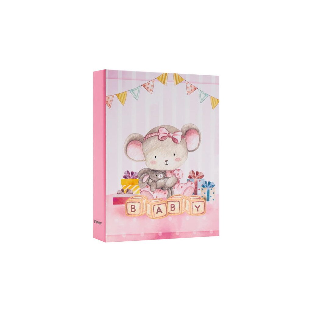 Jedná se o malé a kompaktní dětské fotoalbum s laminovanou obálkou ve řůžové barvě. Album má svařovanou vazbu ve formě knihy. Je ideální pro uchování 36 fotografií formátu 10 x 15 cm, které se vkládají zasouváním, a neumožňuje popisky. Listy jsou vyrobeny z bílého PVC/PP materiálu. Na obálce je vyobrazen roztomilý dětský motiv. Album je skvělým dárkem pro novopečené rodiče k uchování vzpomínek na první měsíce života dítěte.Doplňkové parametry