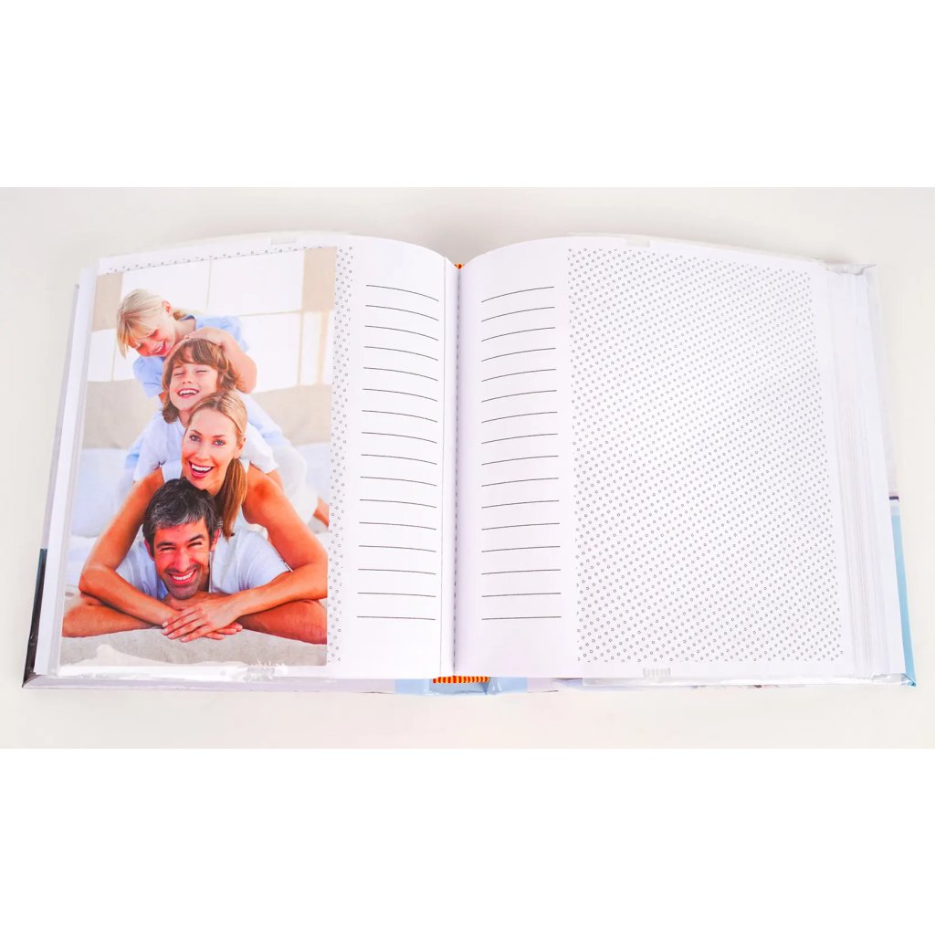 Uchovejte si vzpomínky na vaše miminko v tomto fotoalbu s dětským motivem v modrém dekoru. Díky šité vazbě a kvalitnímu laminovanému papíru je album velmi odolné a pojme až 50 fotografií ve formátu 10 x 15 cm. U každé fotky je také prostor na krátký popisek, abyste si mohli zaznamenat ty nejdůležitější chvíle z dětství vašeho chlapečka.Doplňkové parametry