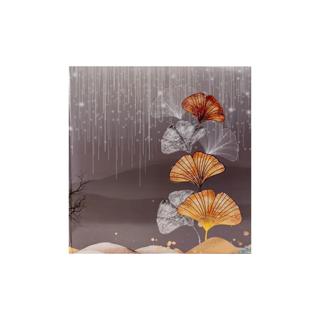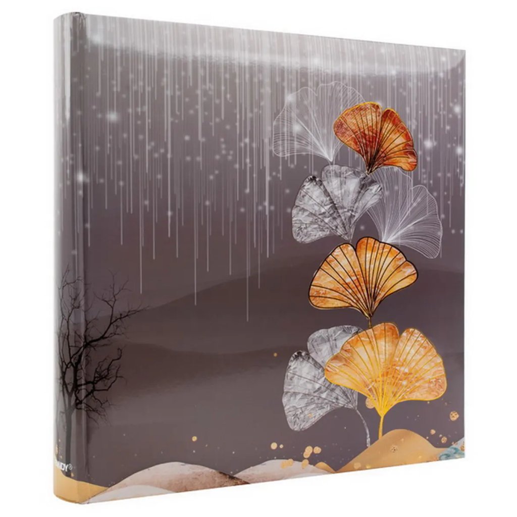 Jedná se o elegantní fotoalbum s laminovanou obálkou v tmavě šedé barvě s motivem. Album má šitou vazbu, která zaručuje jeho dlouhou životnost. Je ideální pro uchování až 500 fotografií formátu 10 x 15 cm, které se vkládají zasouváním. U každé fotografie je prostor pro popisky. Listy jsou vyrobeny z bílého papíru. Na obálce je vyobrazen motiv listů Ginkgo biloba v kombinaci oranžové/zlaté a stříbrné barvy na tmavém pozadí. Díky svému modernímu a neutrálnímu motivu je album ideální pro uchování vzpomínek z cest, přírody nebo jiných cenných zážitků.Doplňkové parametry