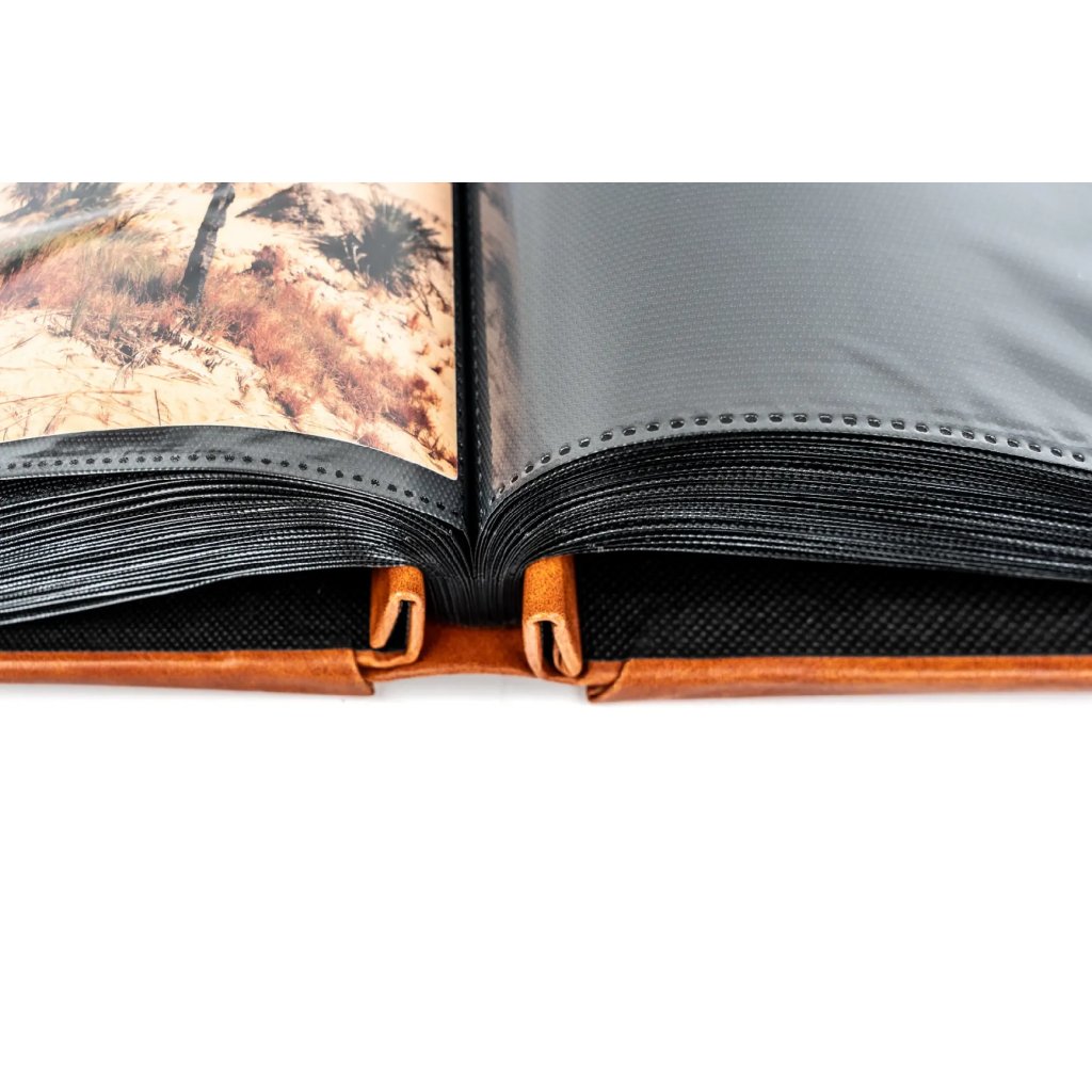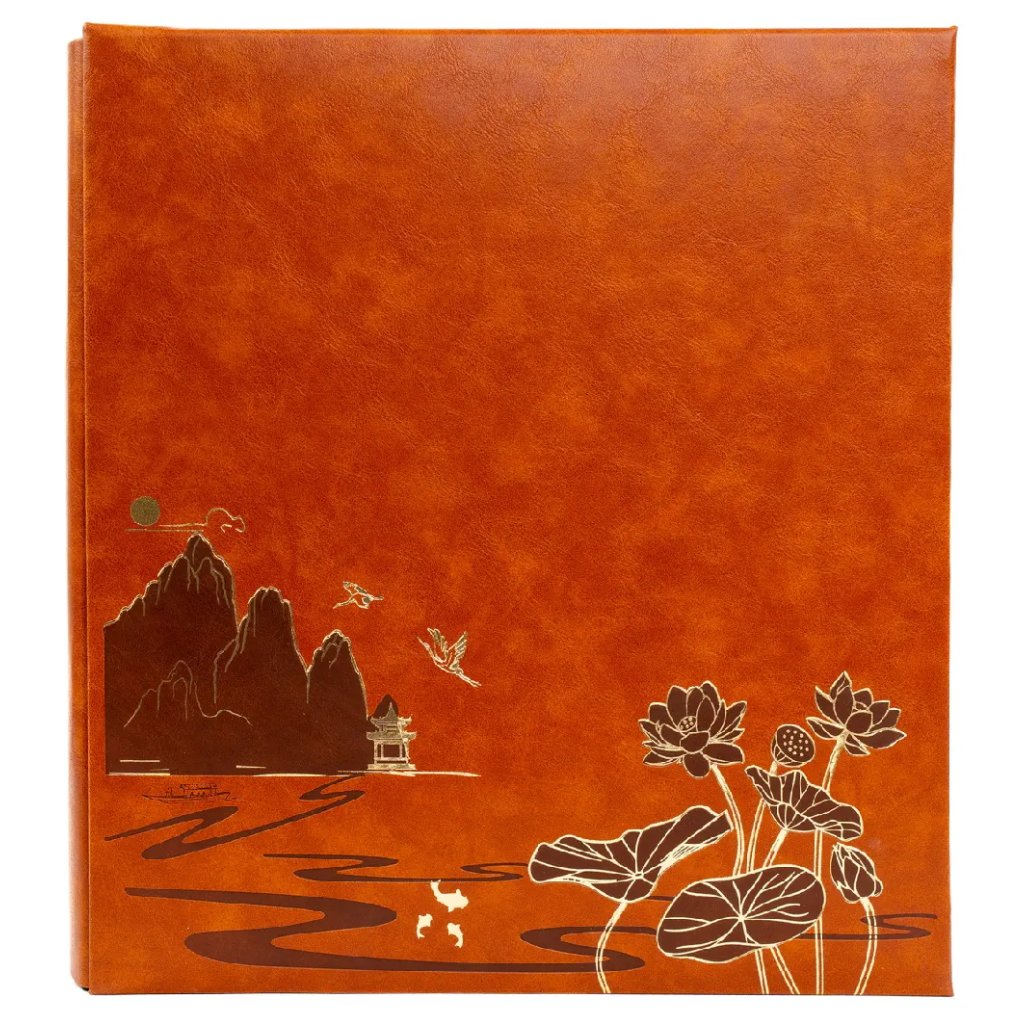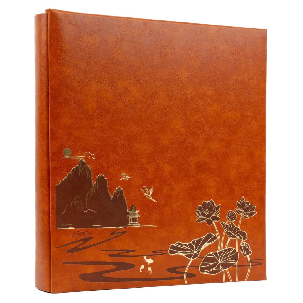 Toto velkoformátové zasunovací fotoalbum v teplém hnědém provedení zdobí elegantní motiv lotosu a hor, který mu dodává tradiční a luxusní vzhled. Album s mimořádnou kapacitou pro 500 fotografií formátu 10 x 15 cm má rozměry 31,5 x 34 cm a je opatřeno velmi pevnou šroubovanou (nýtovanou) vazbou pro maximální odolnost. Obálka z kvalitní imitace kůže s jemnou texturou bezpečně chrání vaše vzpomínky, zatímco vnitřní černé PVC/PP listy bez popisek zajišťují, že barvy vašich fotografií budou působit kontrastně a profesionálně.Doplňkové parametry