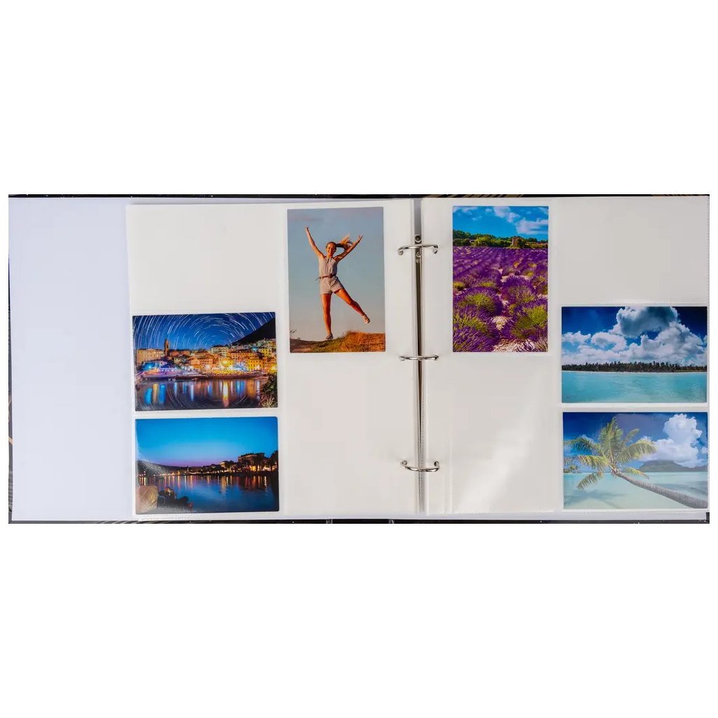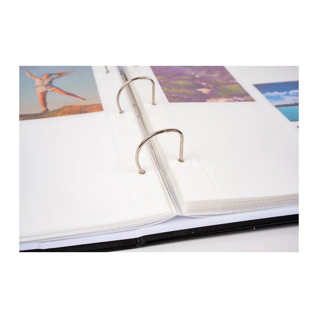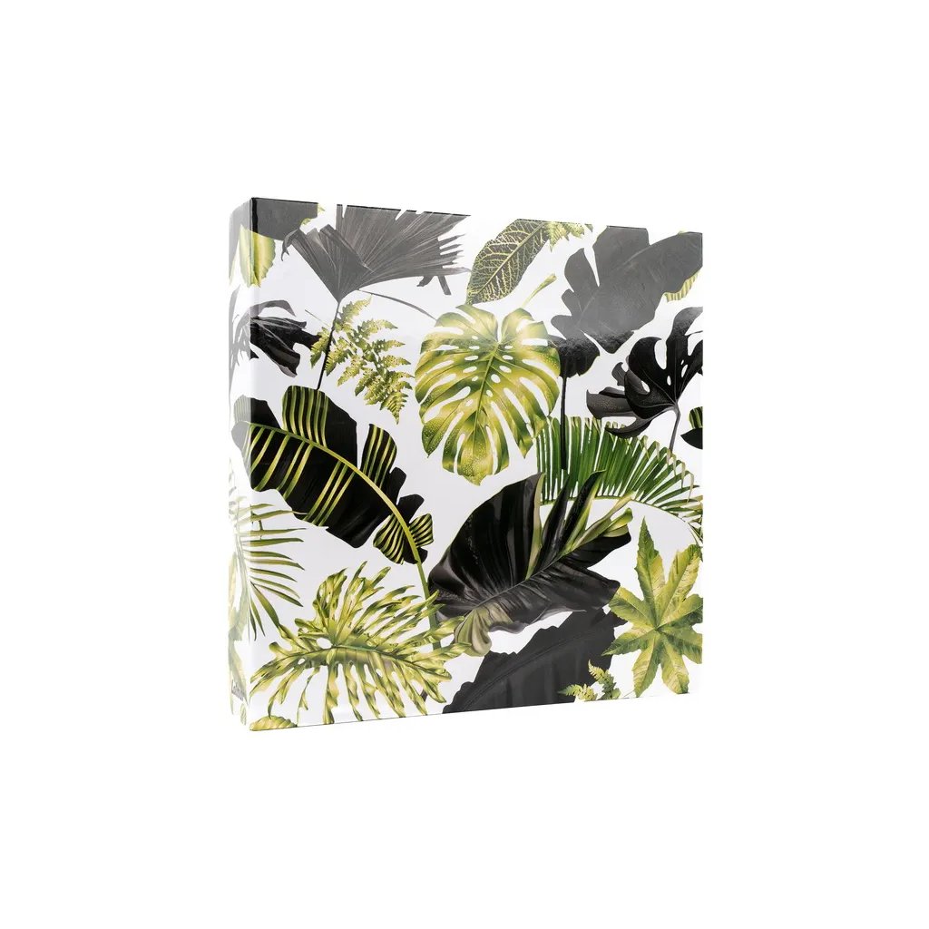 Uchovejte si své vzpomínky v tomto elegantním fotoalbu. Pevné desky z laminovaného papíru a kroužková vazba zaručují odolnost a dlouhou životnost. Album je laděné do moderního designu s tropickými listy v zelených a černých odstínech na bílém pozadí, což z něj činí svěží a stylový doplněk do každé domácnosti. Album pojme až 500 fotografií ve formátu 10 x 15 cm, které se vkládají do průhledných kapes (pět na jednu stranu). Fotografie jsou tak bezpečně chráněny a připraveny k rychlému prohlížení.Doplňkové parametry