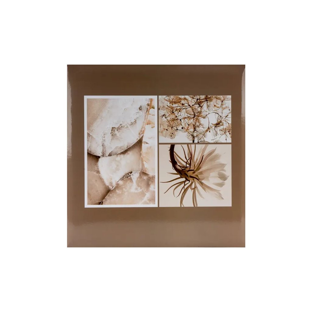 Uchovejte si své vzpomínky v tomto elegantním fotoalbu. Pevné desky z laminovaného papíru a kroužková vazba zaručují odolnost a dlouhou životnost. Album je laděné do neutrálních béžových tónů, s motivem přírodních detailů jako je kámen, suché větve a květ, což z něj činí decentní a stylový doplněk do každé domácnosti. Album pojme až 500 fotografií ve formátu 10 x 15 cm, které se vkládají do průhledných kapes (pět fotografií na jednu stranu). Fotografie jsou tak bezpečně chráněny a připraveny k rychlému prohlížení.Doplňkové parametry