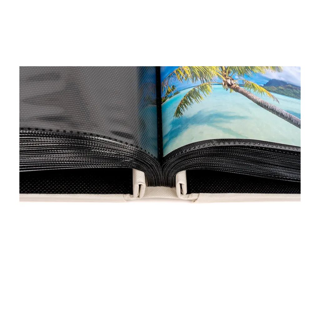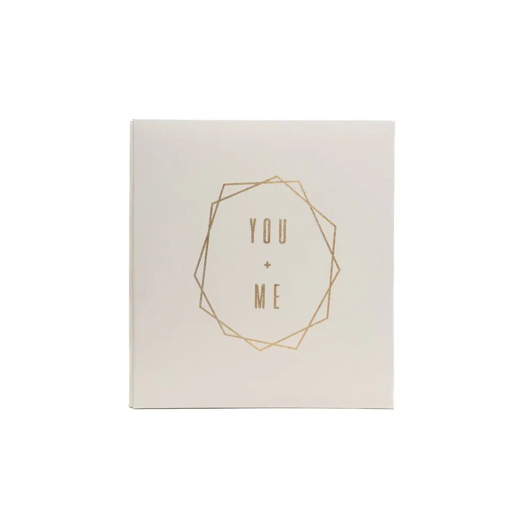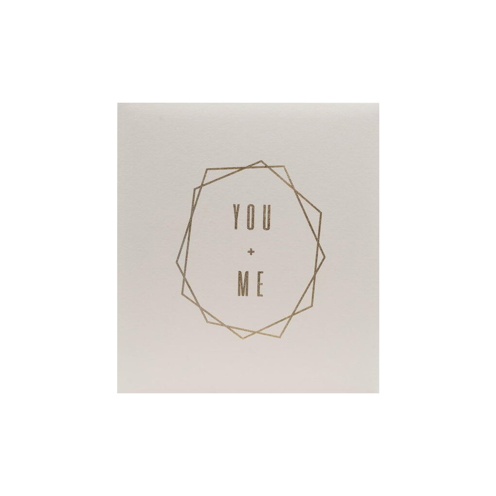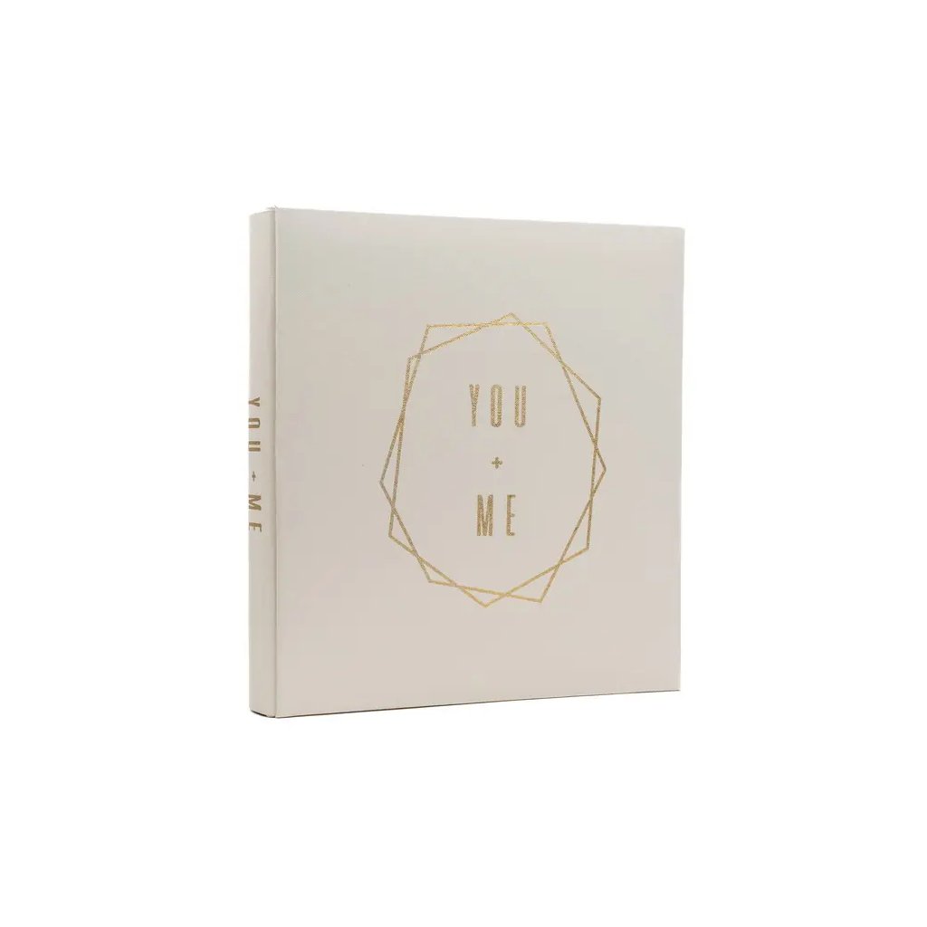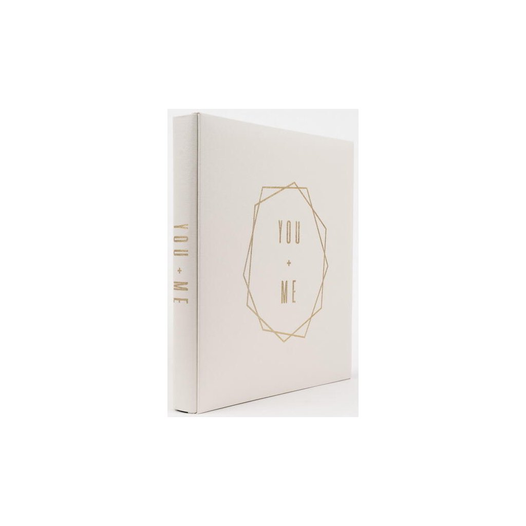Jedná se o elegantní fotoalbum s imitací kůže v bílé barvě se zlatým geometrickým nápisem "You + Me". Album má nýtovanou vazbu, která zaručuje jeho dlouhou životnost. Je ideální pro uchování až 500 fotografií a listy uvnitř jsou v černé barvě. Na jedné straně se vejde 5 fotografií – dvě fotografie na výšku (10x15 cm) a tři fotografie na šířku (15x10 cm). Díky svému minimalistickému a nadčasovému designu se album hodí do každého interiéru.Doplňkové parametry